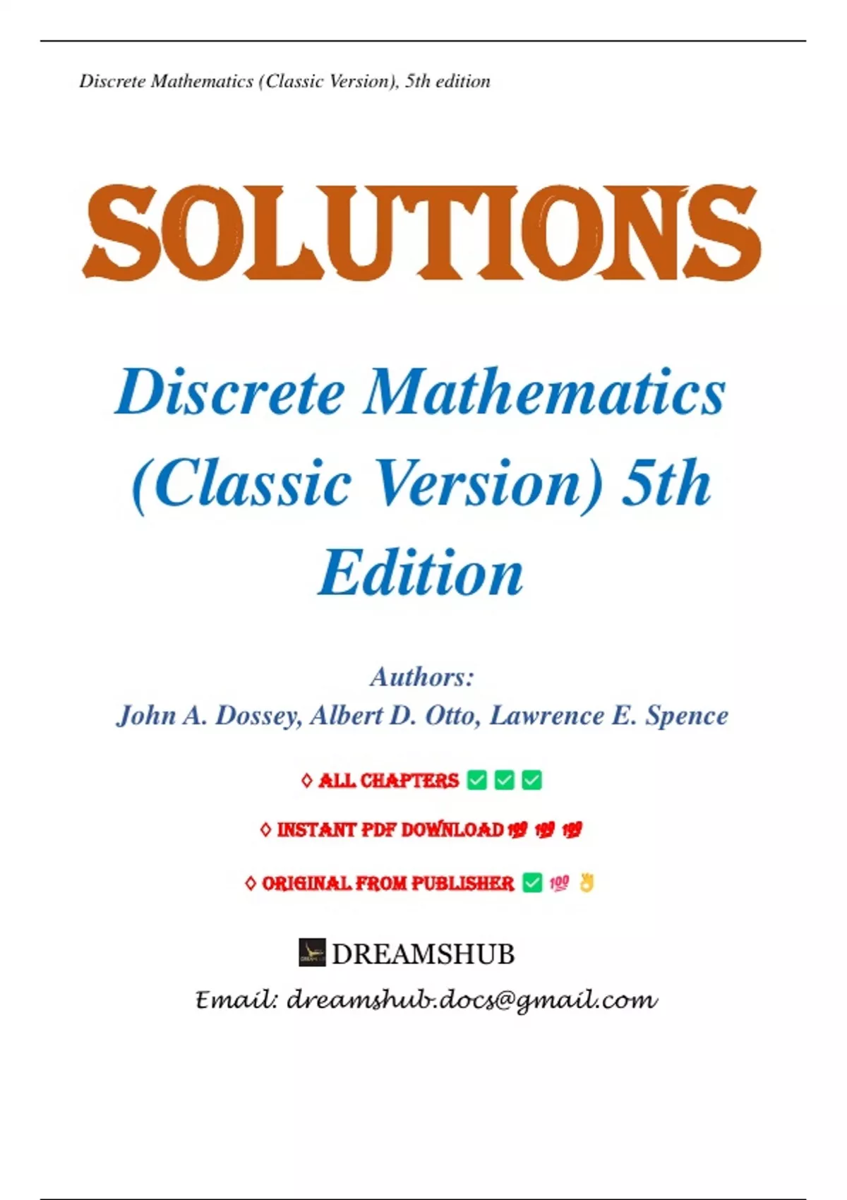 Solutions Manual for Discrete Mathematics (Classic Version) 5th Edition by John A. Dossey