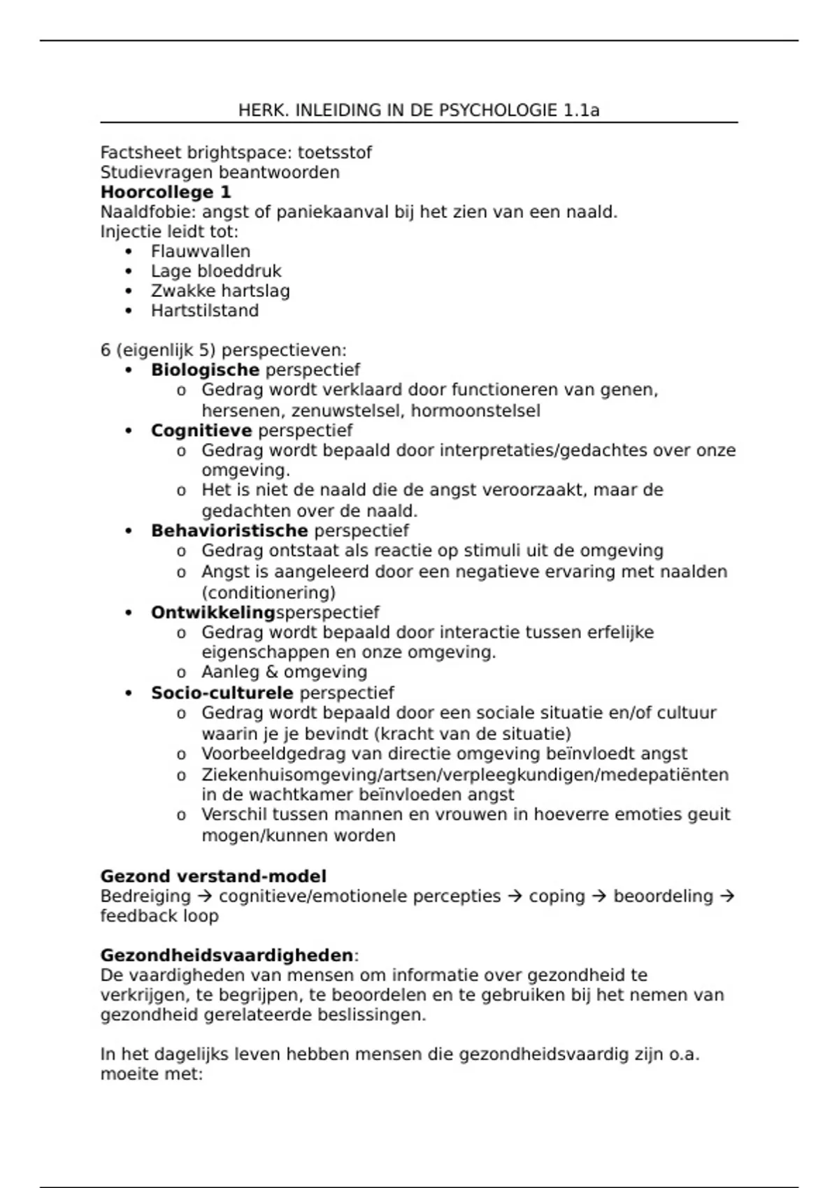 HERK. INLEIDING IN DE PSYCHOLOGIE 1.1a