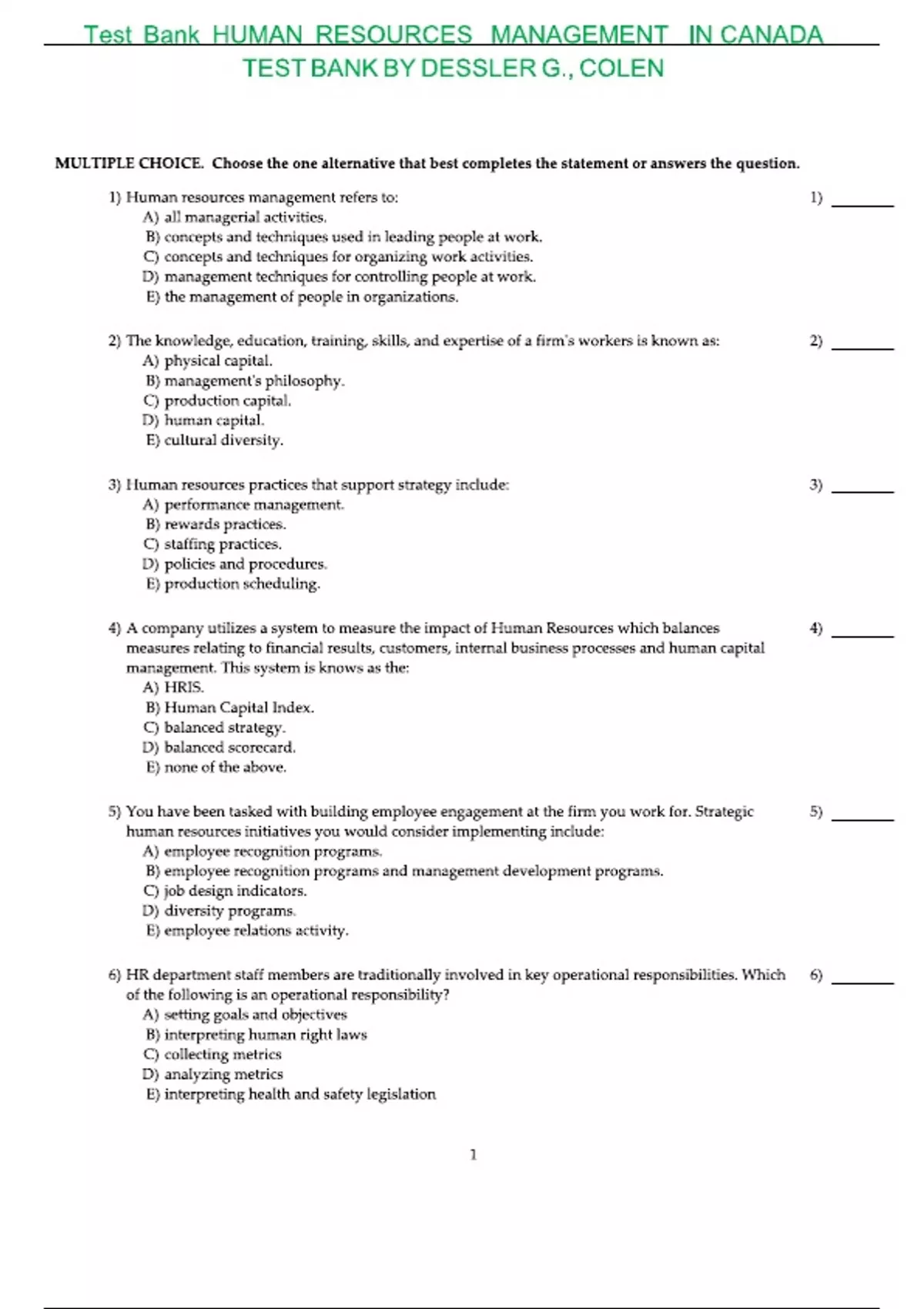 Test Bank For Human Resources Management in Canada, 15th Edition by Gary Dessler, ISBN: 9780137291878, All 17 Chapters