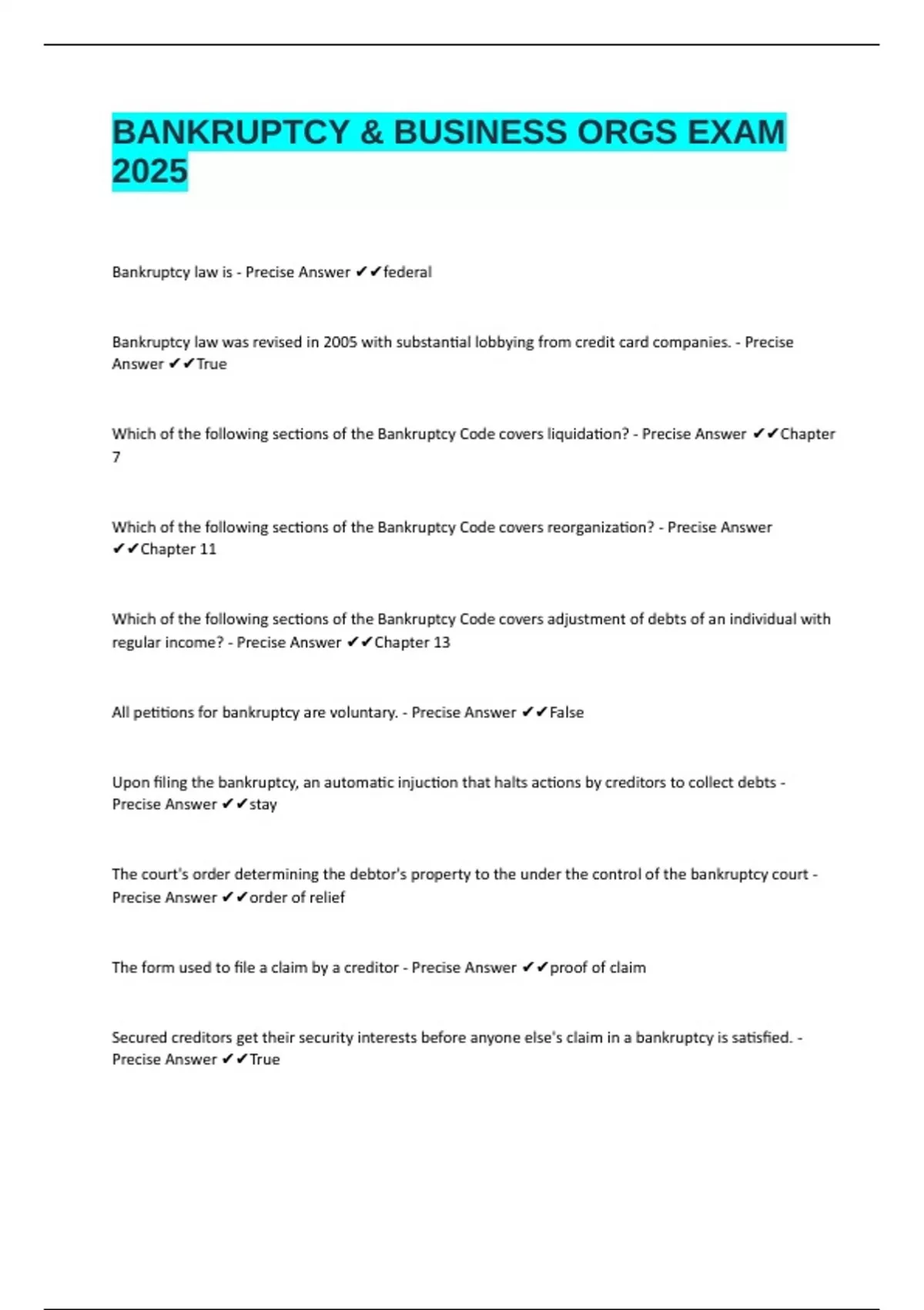 BANKRUPTCY & BUSINESS ORGS EXAM