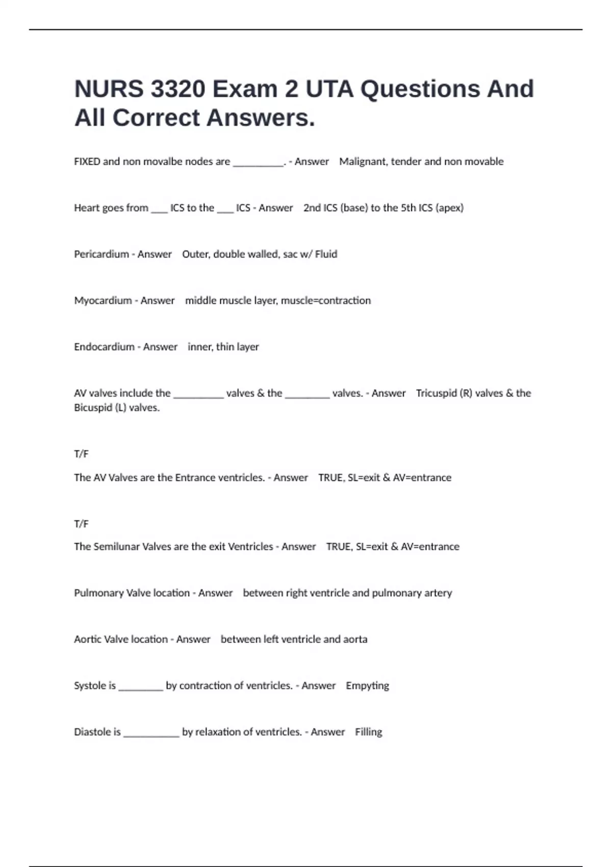 The AV Valves are the Entrance ventricles. - Answer TRUE, SL=exit & AV=entrance