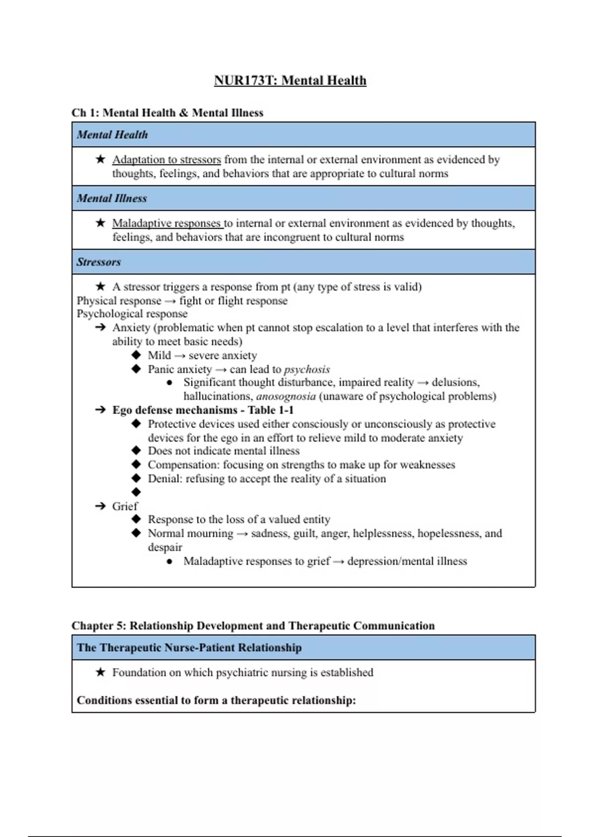 NUR173T: Mental Health