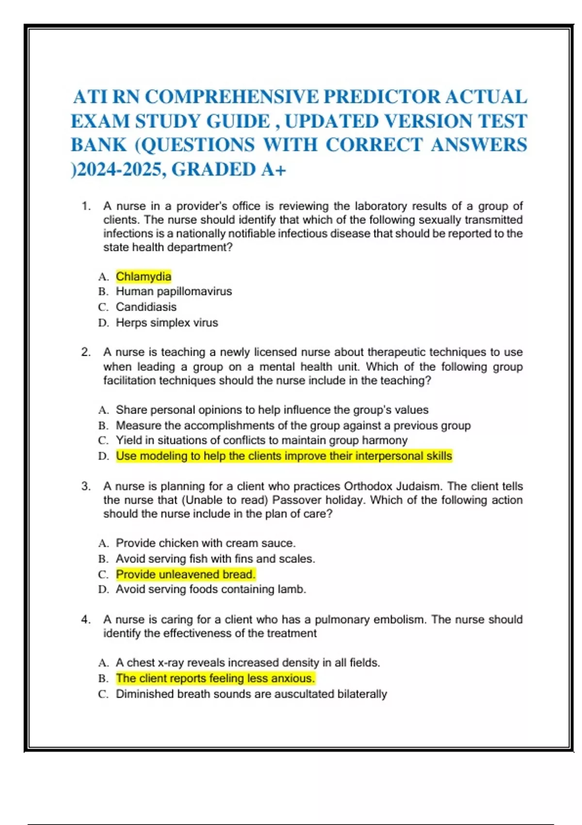 1. A nurse in a provider’s office is reviewing the laboratory results of a group of