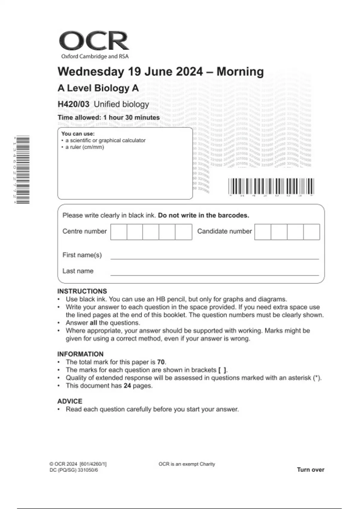 ocr a level biology a h42003 qp 2024