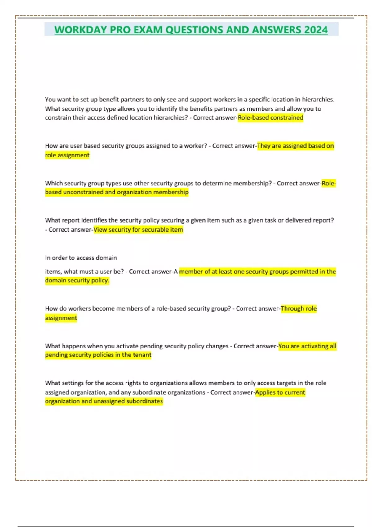 , WORKDAY PRO EXAM QUESTIONS AND ANSWERS 2024