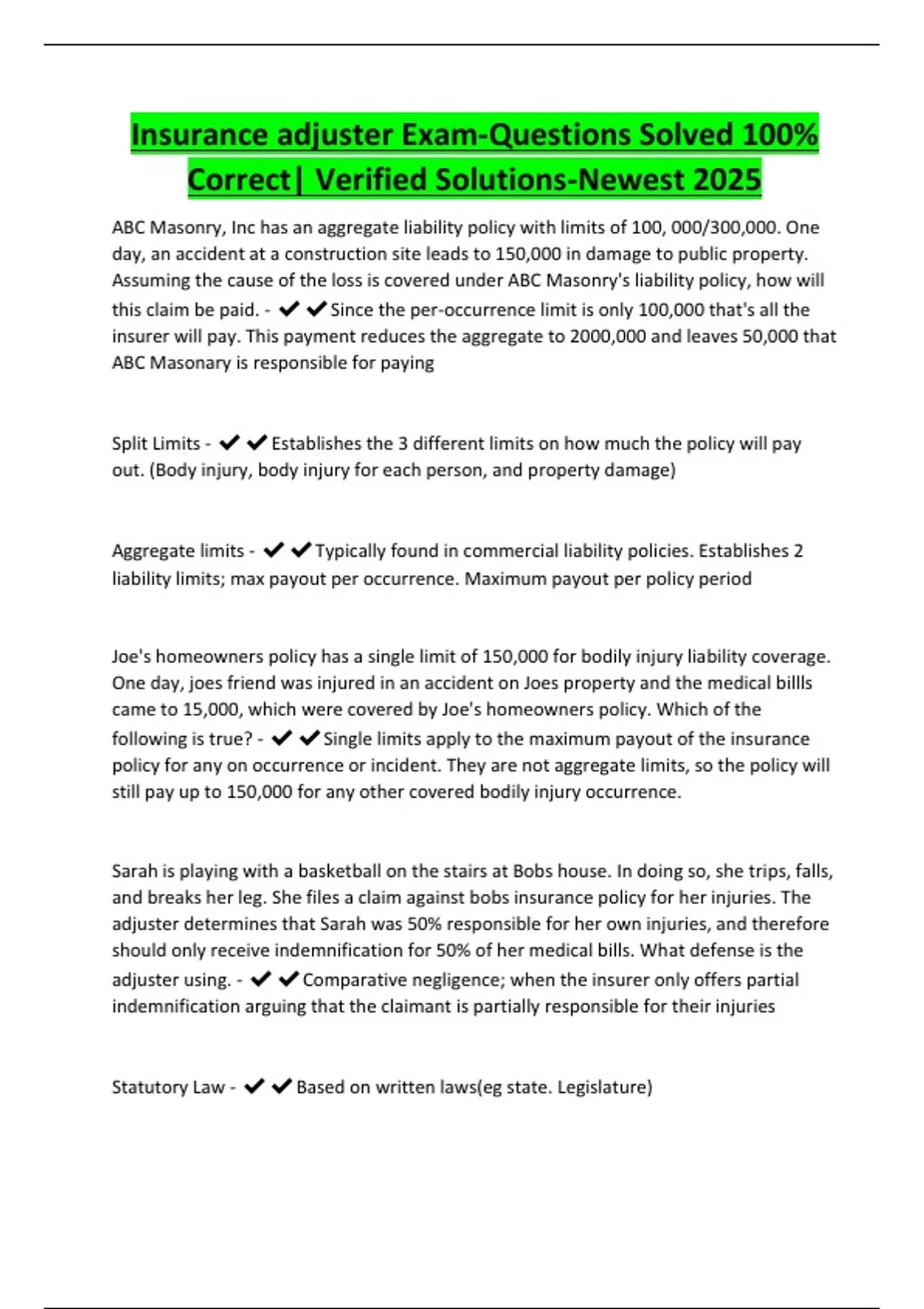 Insurance adjuster Exam-Questions Solved 100% Correct| Verified Solutions-Newest 2025