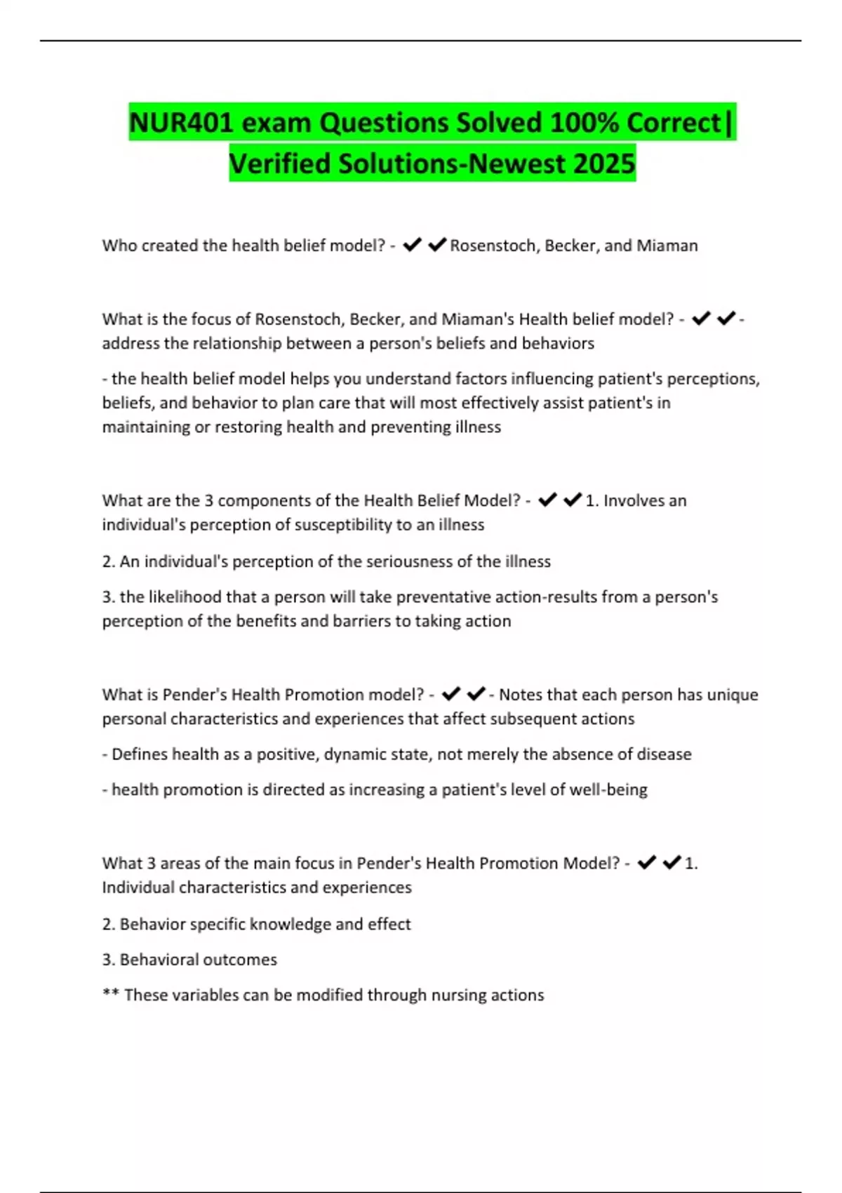 NUR401 exam Questions Solved 100% Correct|
