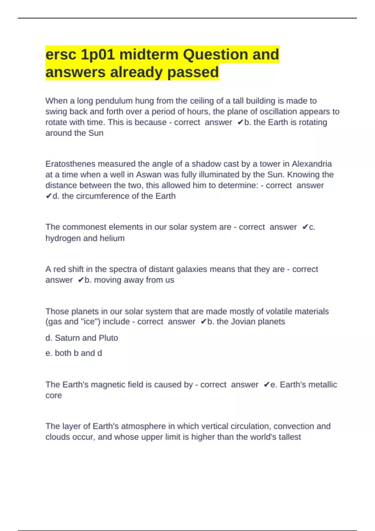 ersc 1p01 midterm Question and answers already passed.2025
