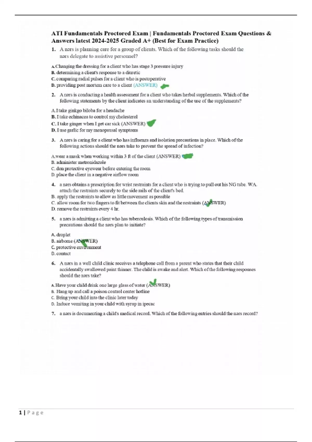 ati fundamentals proctored exam questions ans