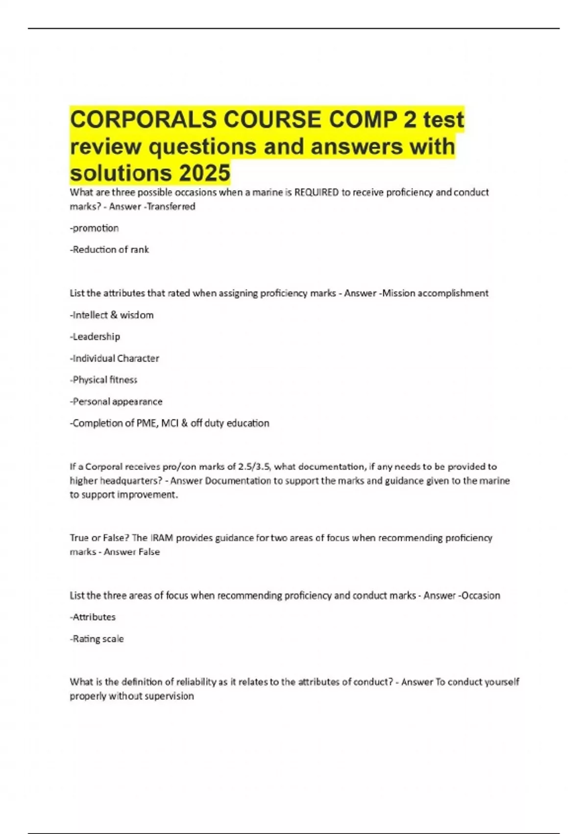 CORPORALS COURSE COMP 2 test review questions and answers with solutions 2025
