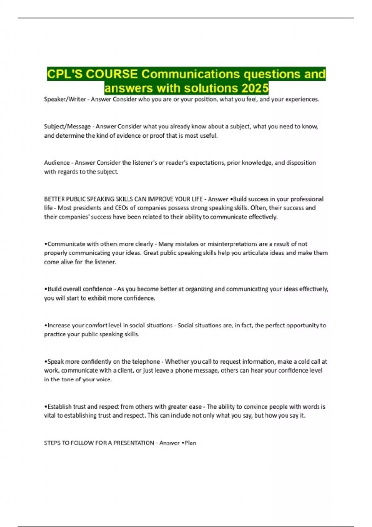 CPL'S COURSE Communications questions and answers with solutions 2025