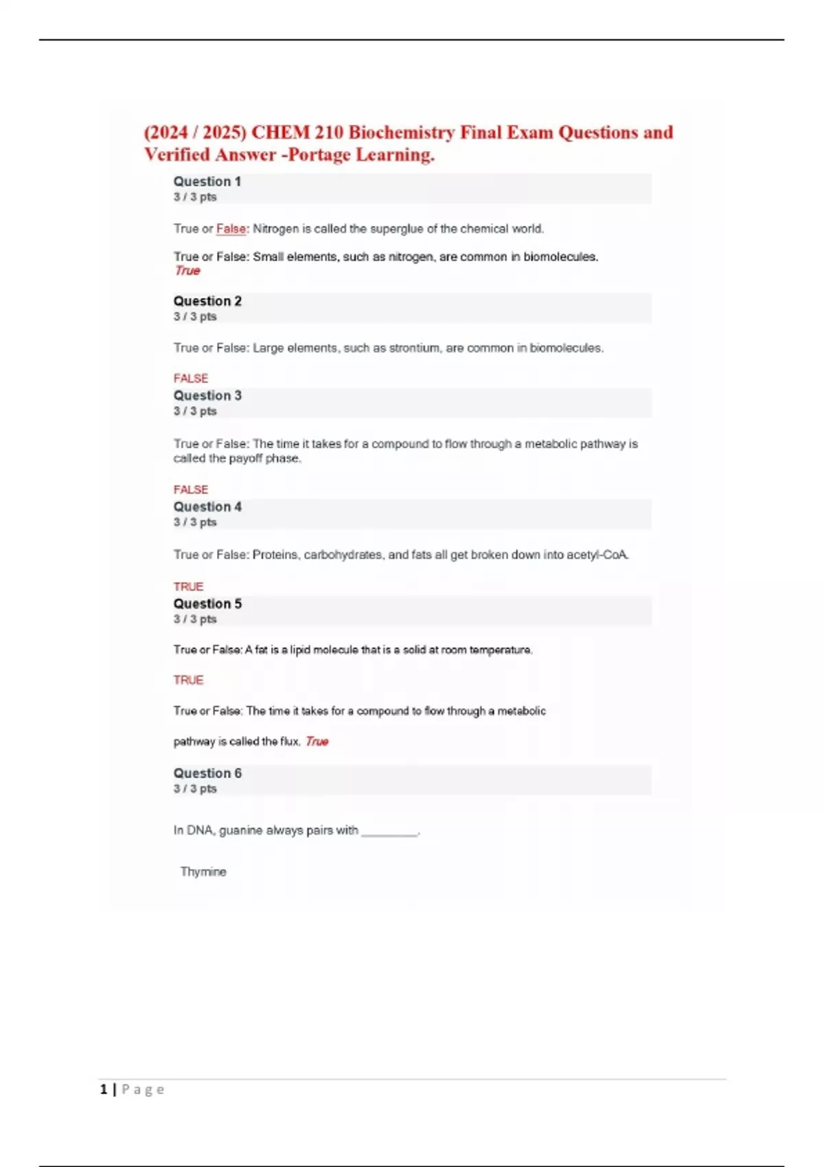 CHEM 210 Biochemistry Final Exam Questions and Answers 2025