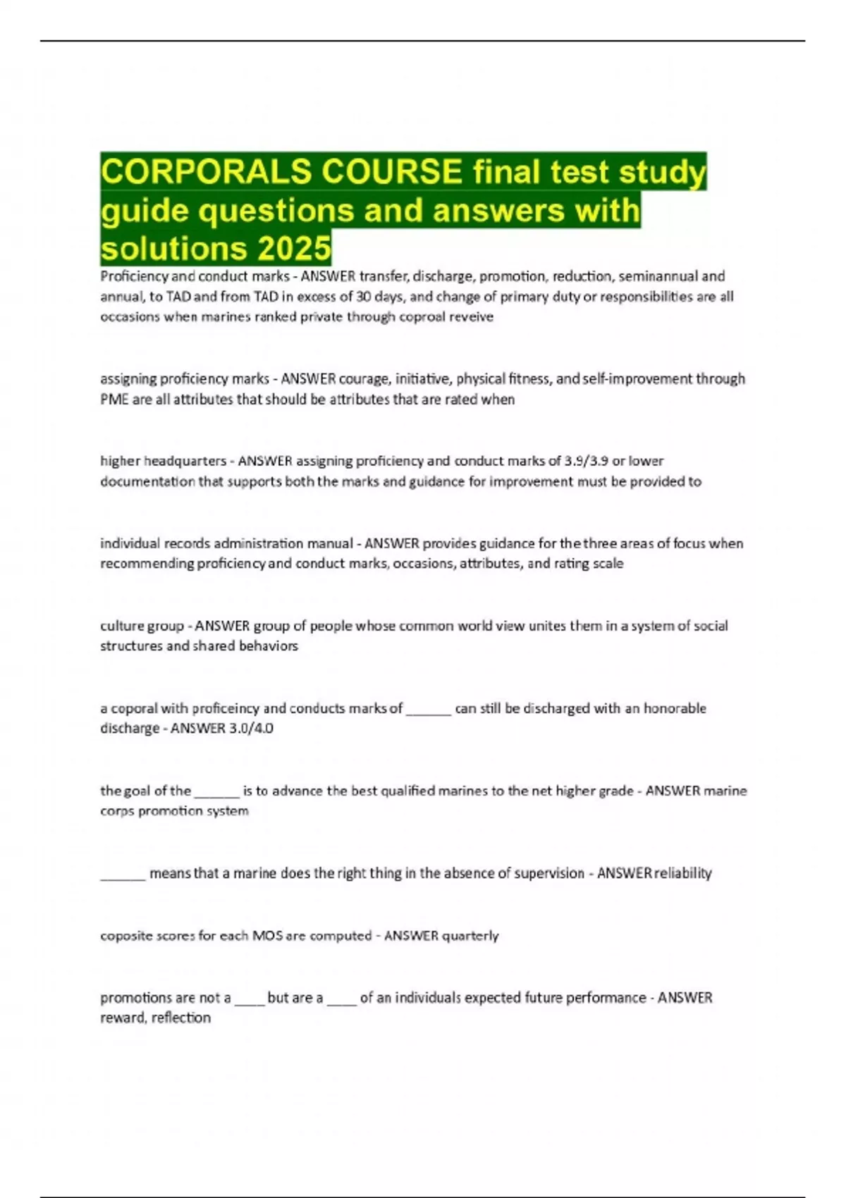 CORPORALS COURSE final test study guide questions and answers with solutions 2025