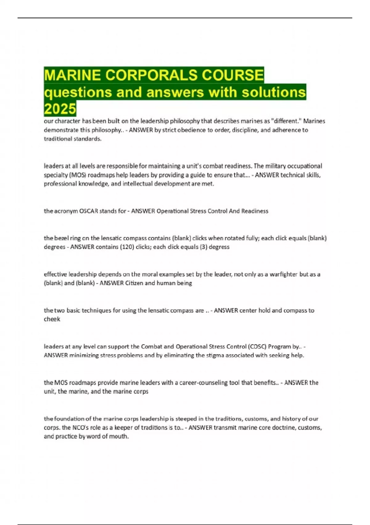 MARINE CORPORALS COURSE questions and answers with solutions 2025