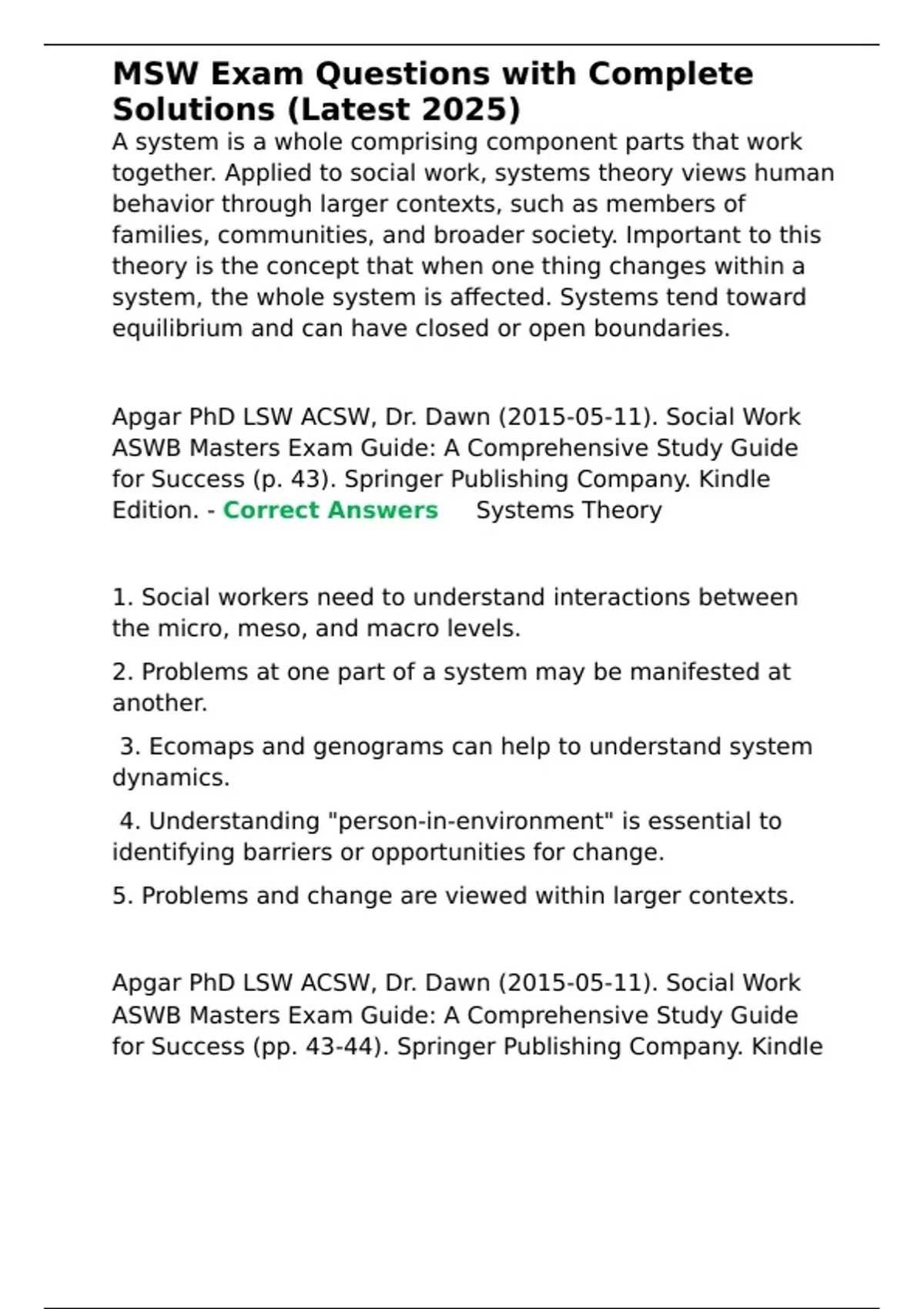 , MSW Exam Questions with Complete