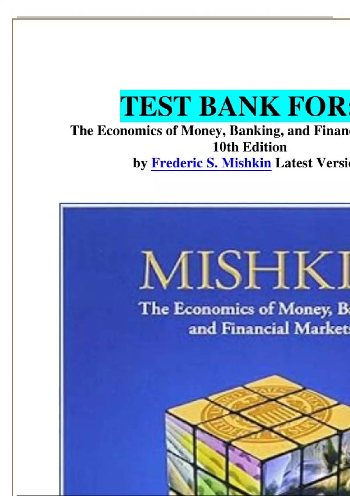TEST BANK FOR: The Economics of Money, Banking, and Financial Markets: 10th Edition by Frederic S. Mishkin Latest Version.