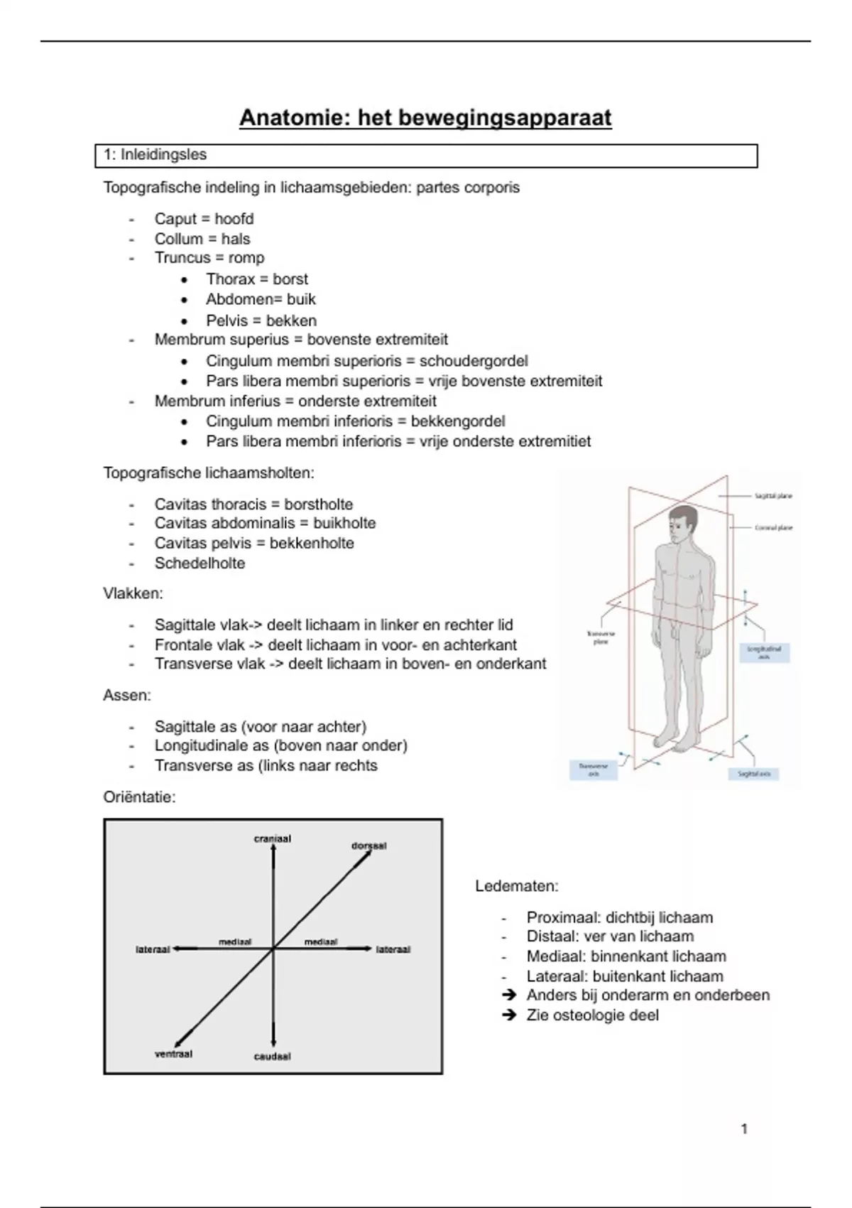 - Sagittale vlak-> deelt lichaam in linker en rechter lid