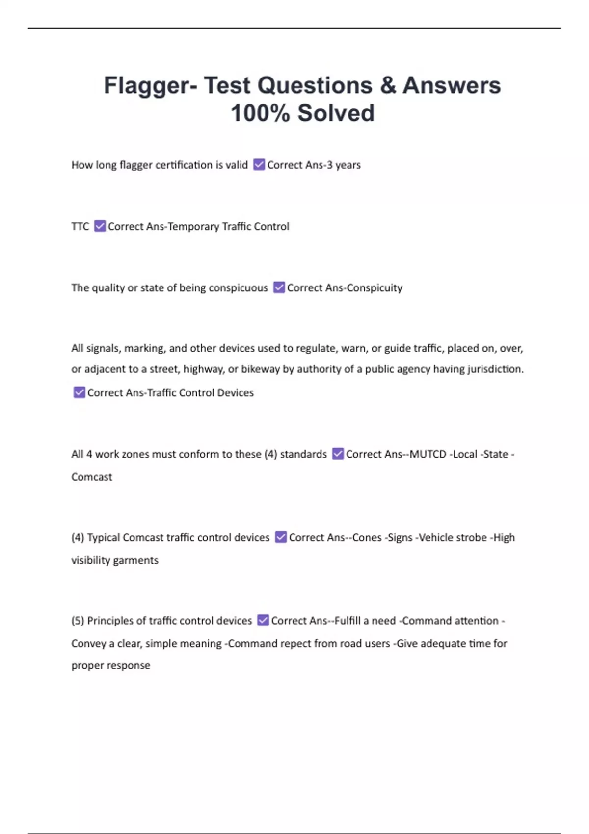 Flagger- Test Questions & Answers 100% Solved