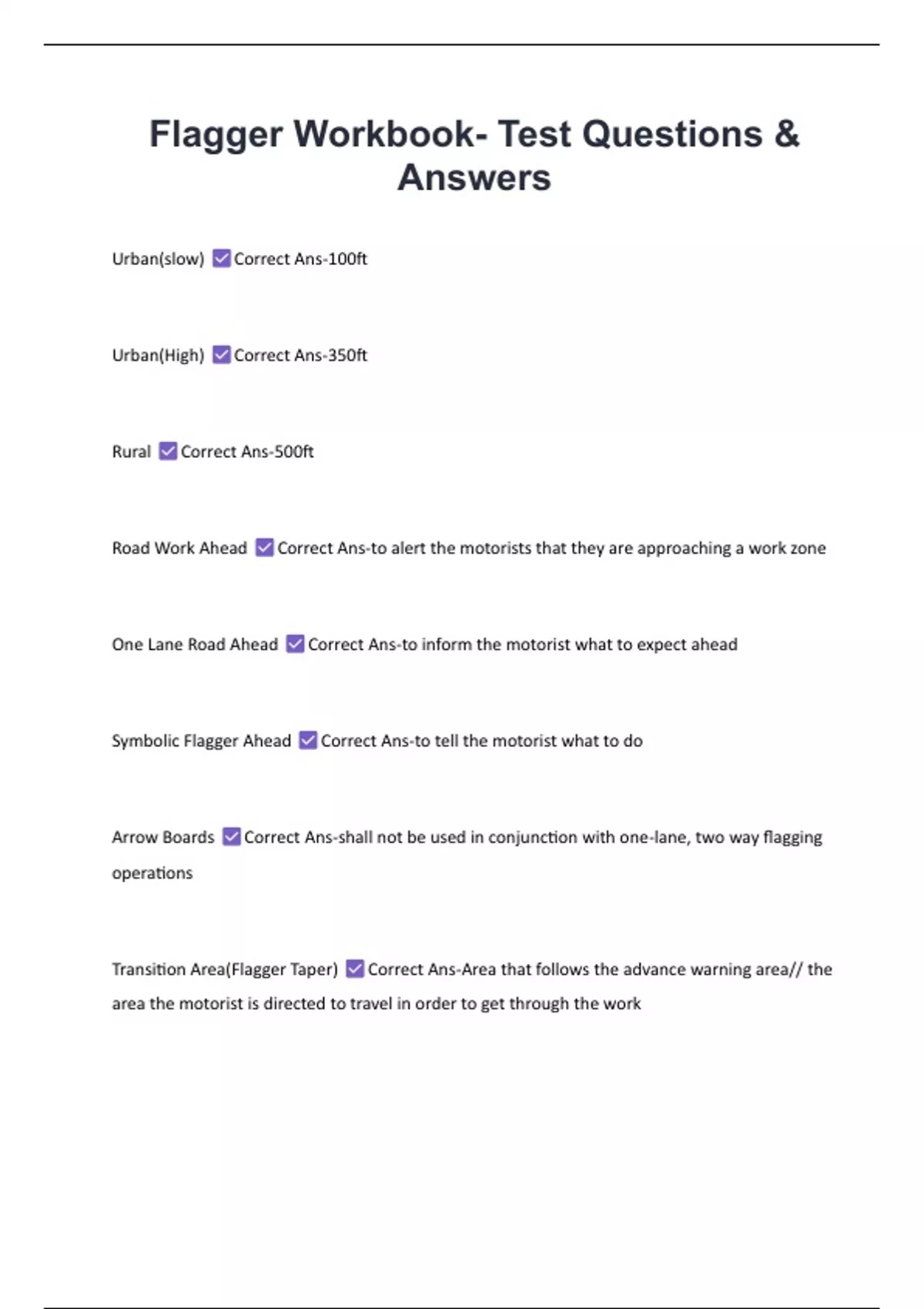 Road Work Ahead Correct Ans-to alert the motorists that they are approaching a work zone