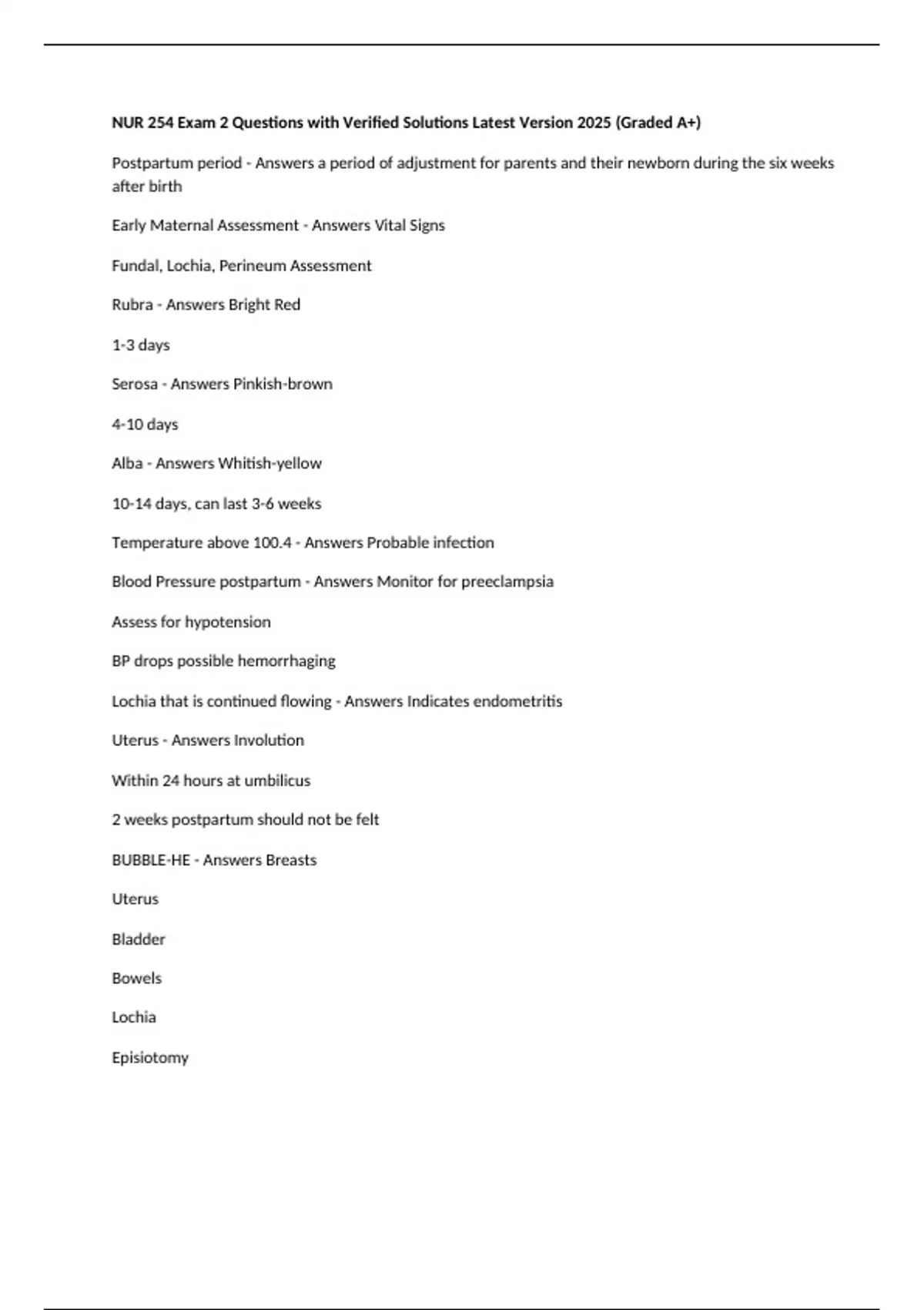 Blood Pressure postpartum - Answers Monitor for preeclampsia