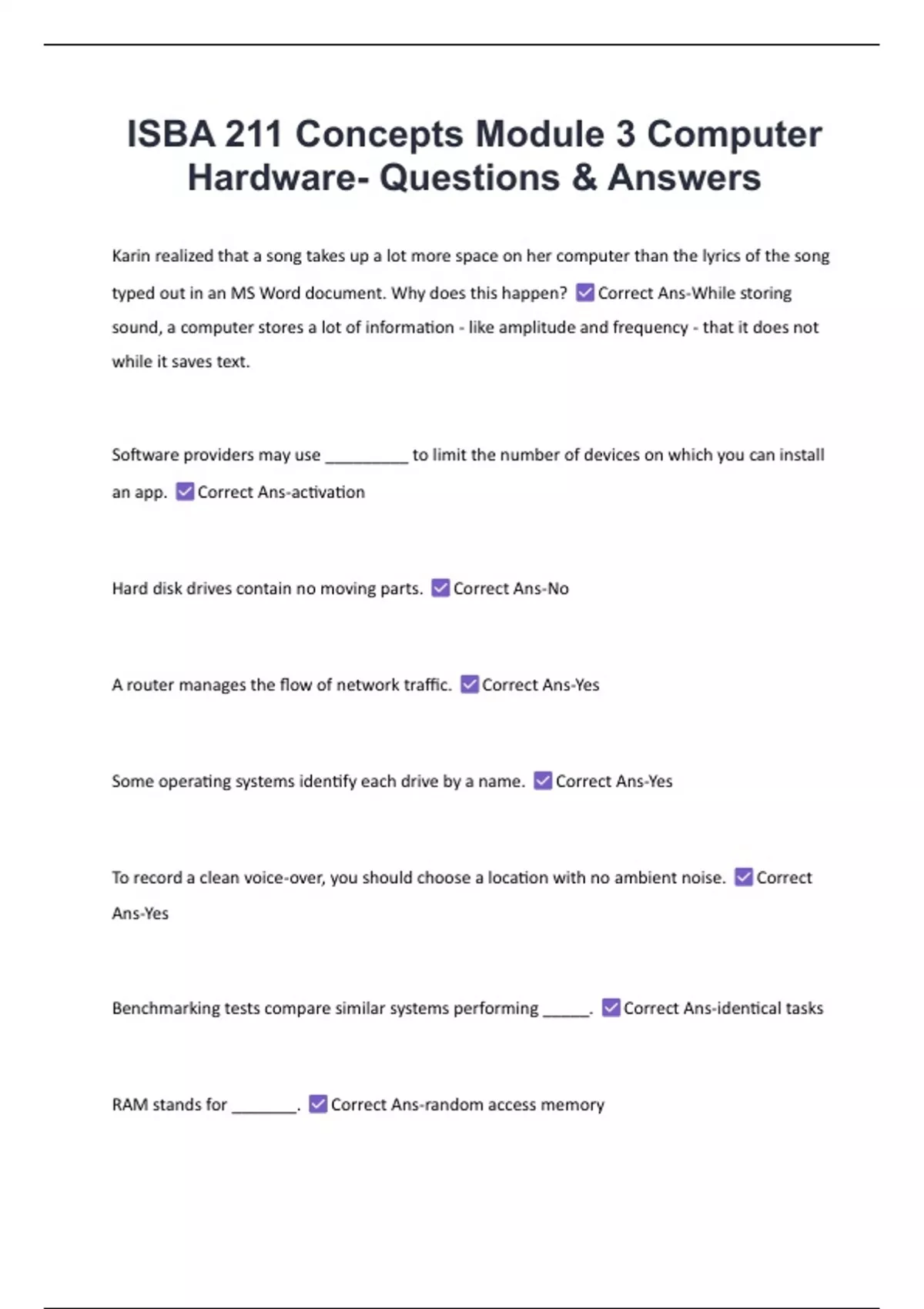ISBA 211 Concepts Module 3 Computer Hardware- Questions & Answers