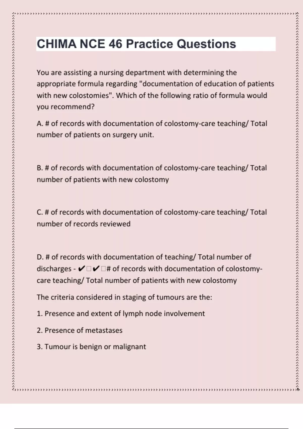 B. # of records with documentation of colostomy-care teaching/ Total