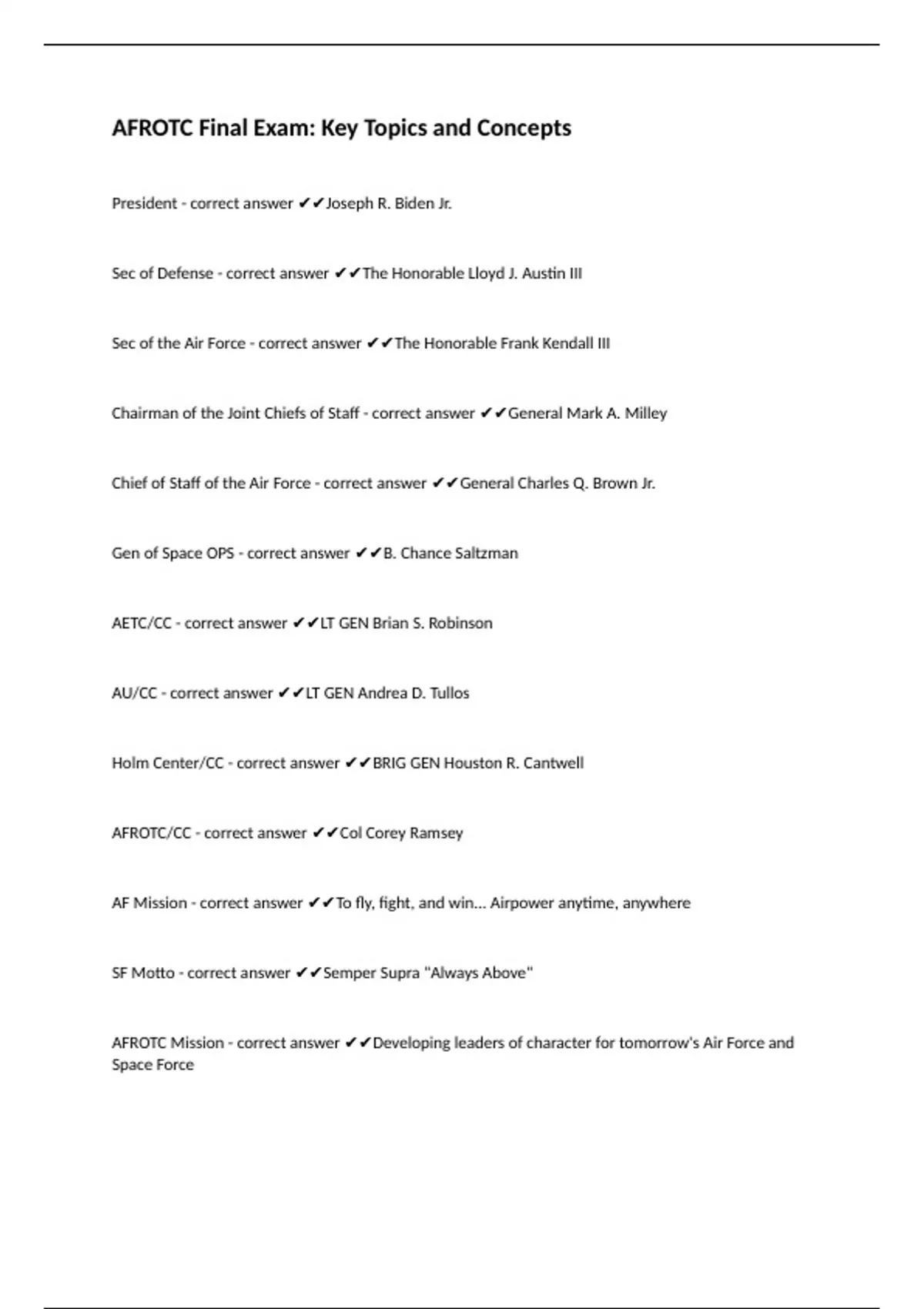 AFROTC/CC - correct answer ✔✔Col Corey Ramsey