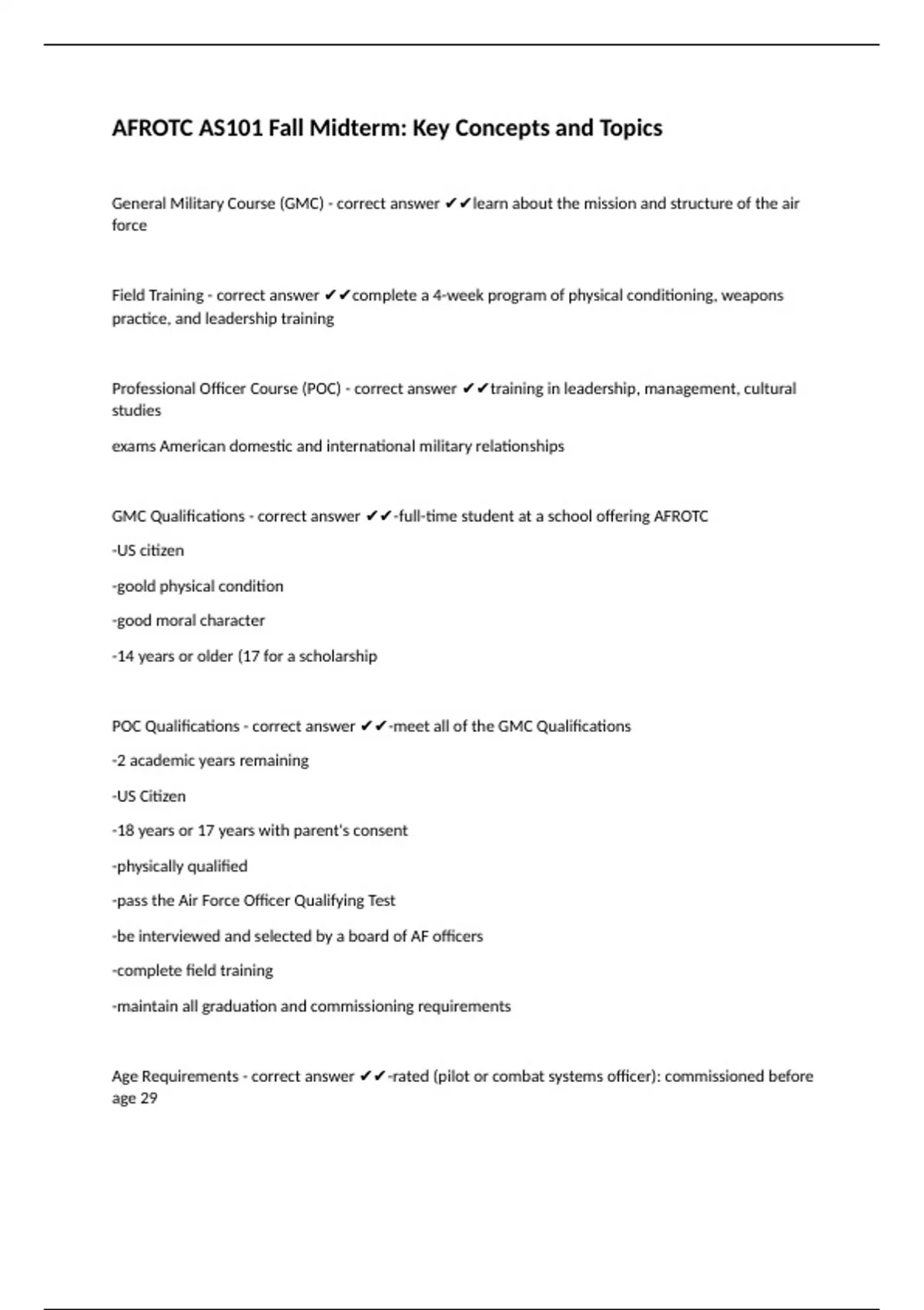 GMC Qualifications - correct answer ✔✔-full-time student at a school offering AFROTC