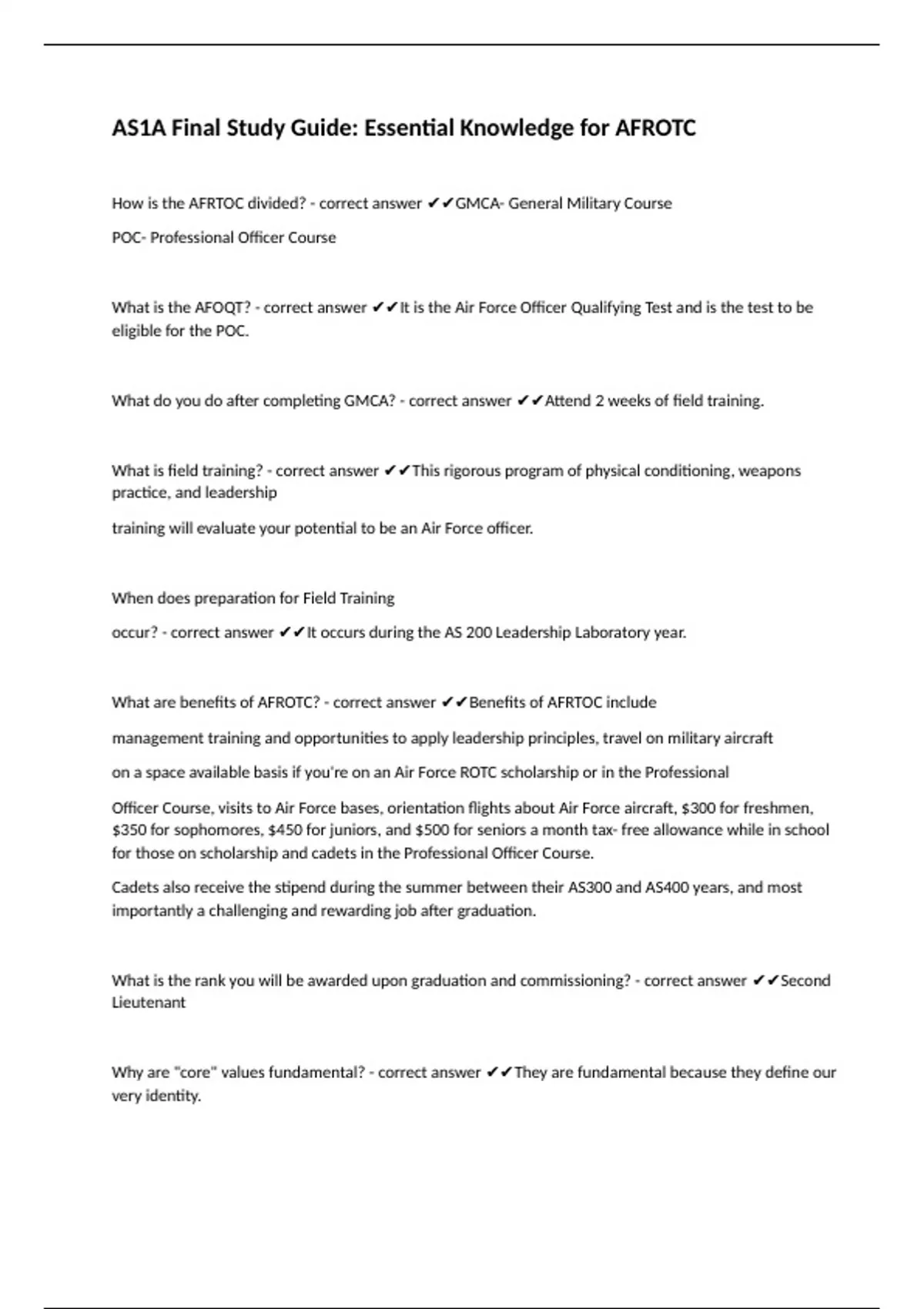What are benefits of AFROTC? - correct answer ✔✔Benefits of AFRTOC include