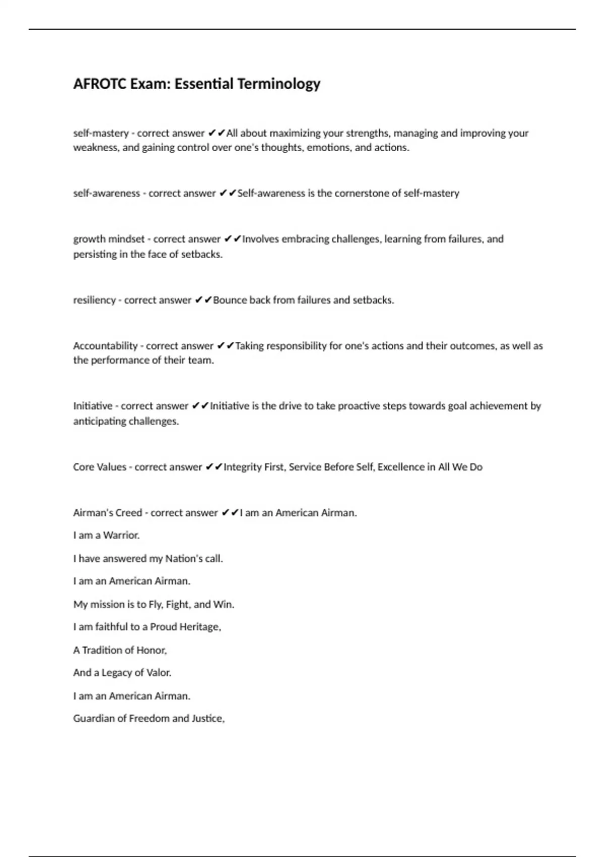 AFROTC Exam: Essential Terminology