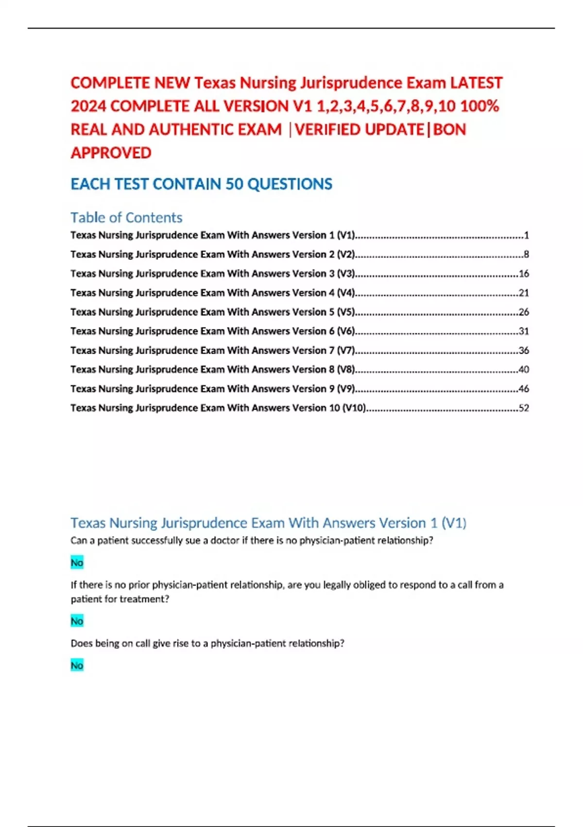 COMPLETE NEW Texas Nursing Jurisprudence Exam LATEST 2024 COMPLETE ALL VERSION V1 1,2,3,4,5,6,7,8,9,10 100% REAL AND AUTHENTIC EXAM VERIFIED UPDATEBON APPROVED