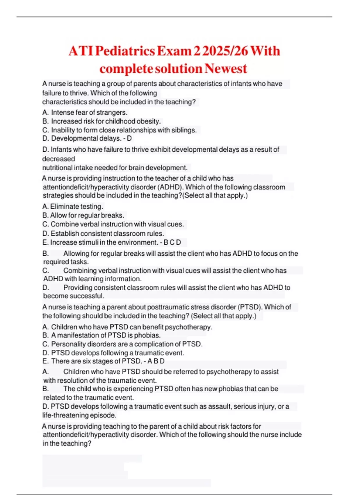 D. Developmental delays. - D Il Il Il Il