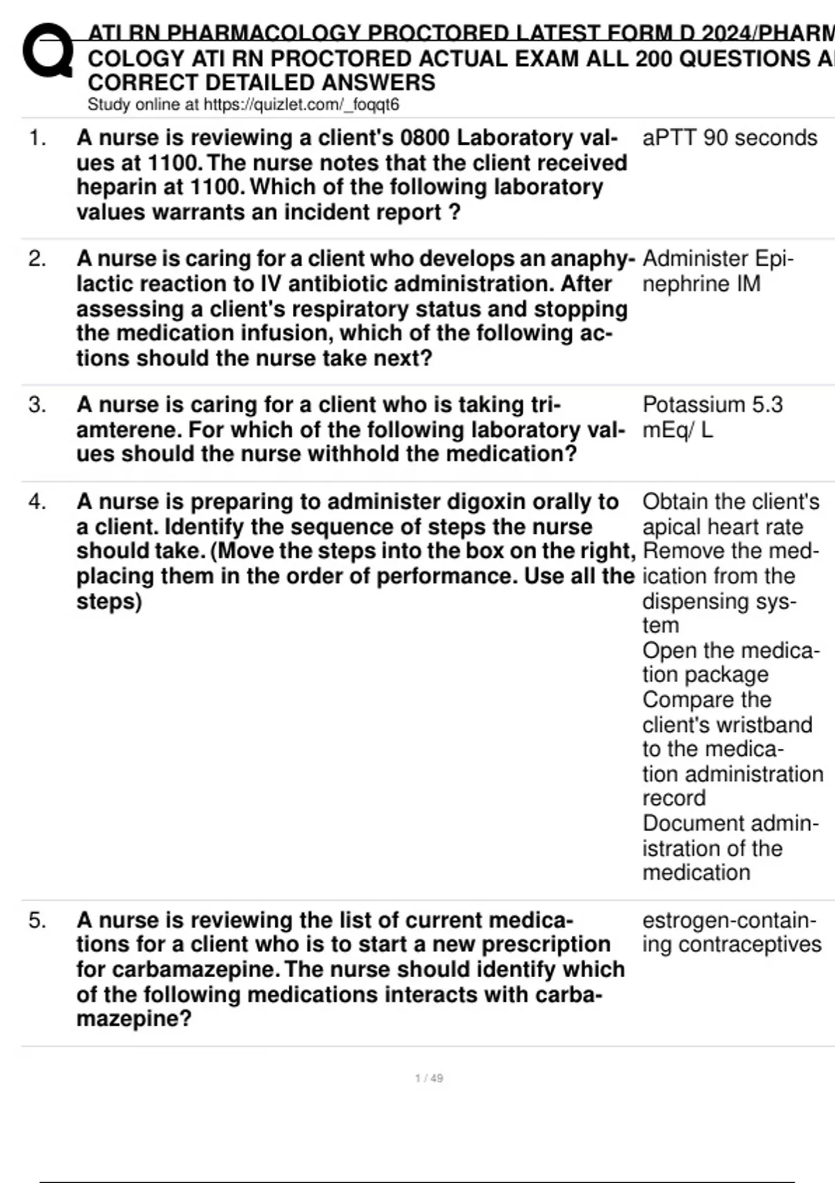 , ATI RN PHARMACOLOGY PROCTORED LATEST FORM D 2024/PHARM
