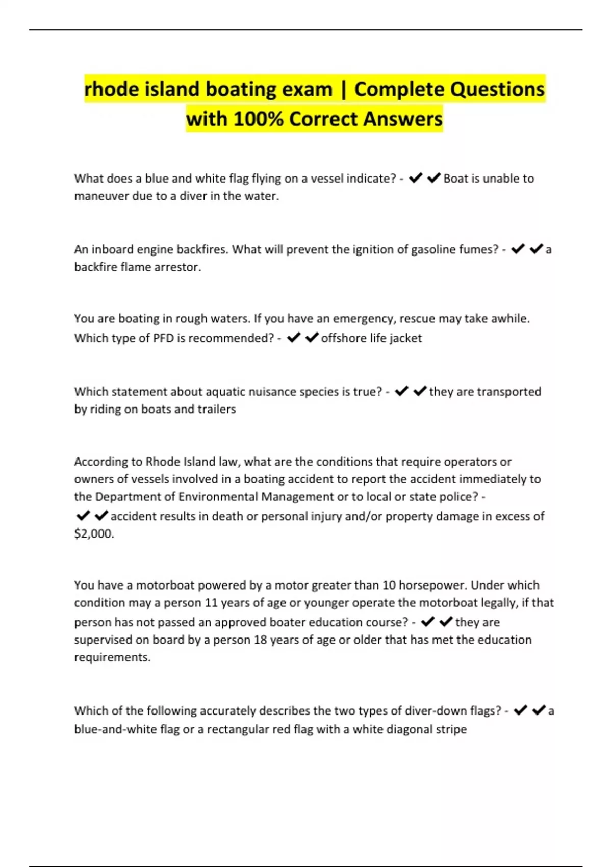 rhode island boating exam | Complete Questions