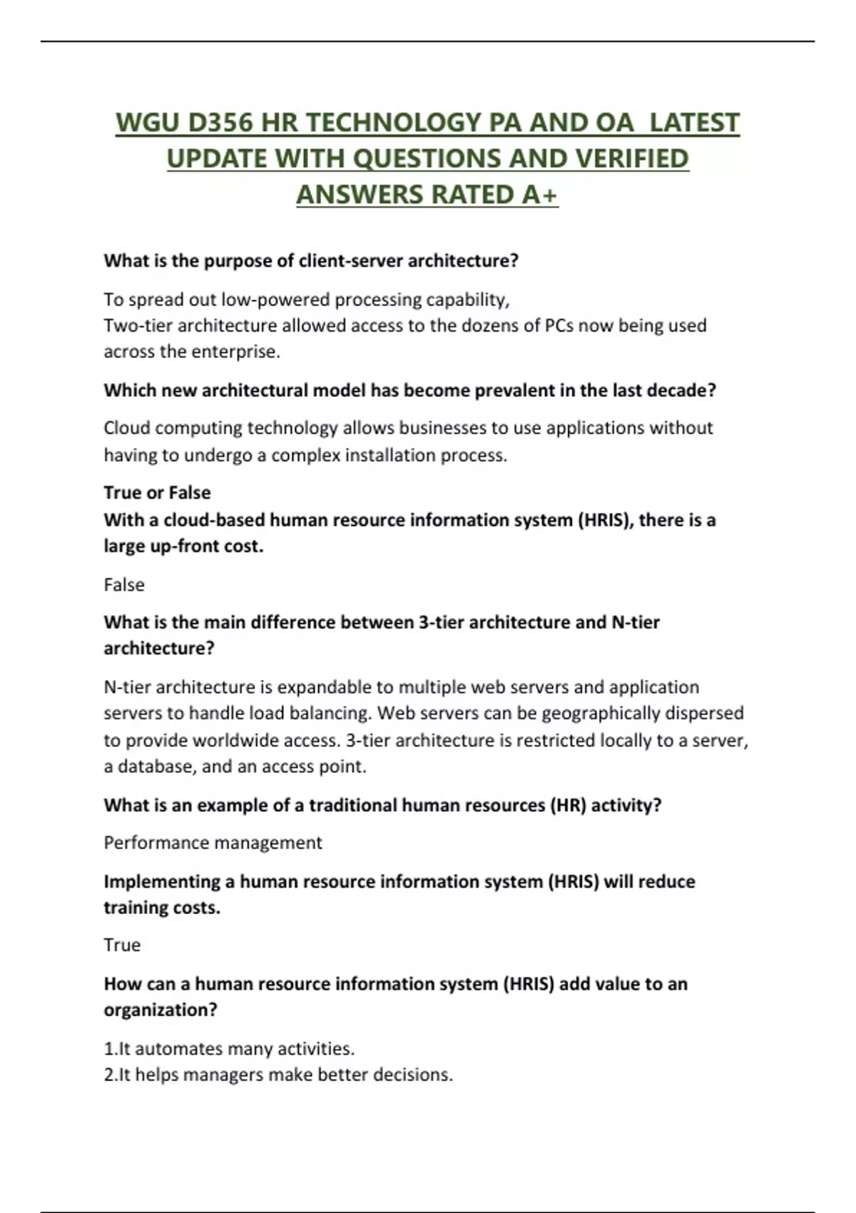 WGU D356 HR TECHNOLOGY PA AND OA LATEST