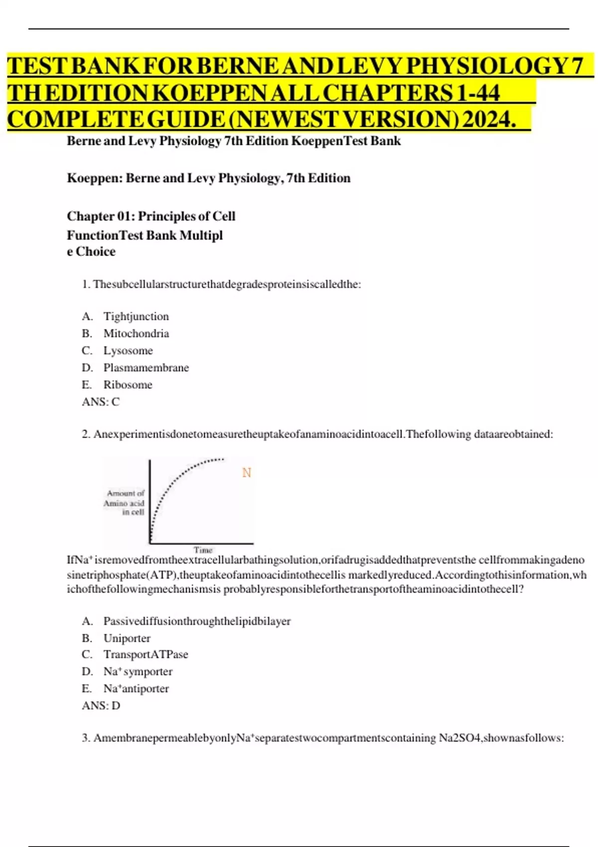 Berne and Levy Physiology 7th Edition KoeppenTest Bank