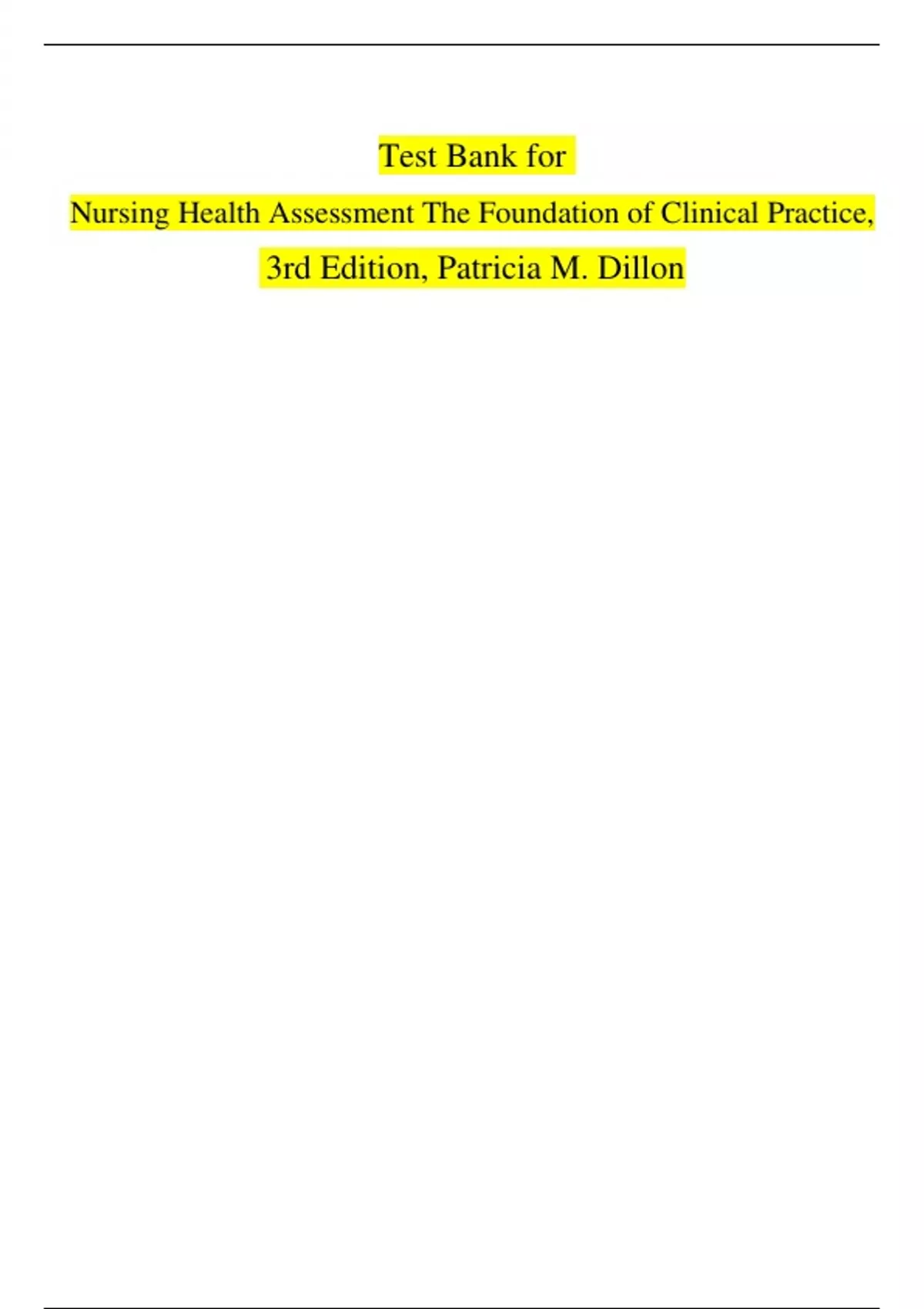 Test Bank for Nursing Health Assessment: The Foundation of Clinical Practice, 3rd Edition by Patricia M. Dillon – Latest Version