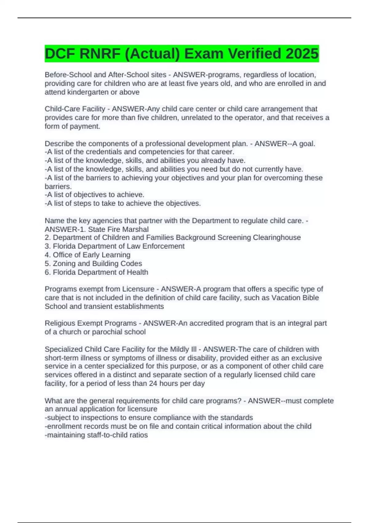 DCF RNRF (Actual) Exam Verified 2025