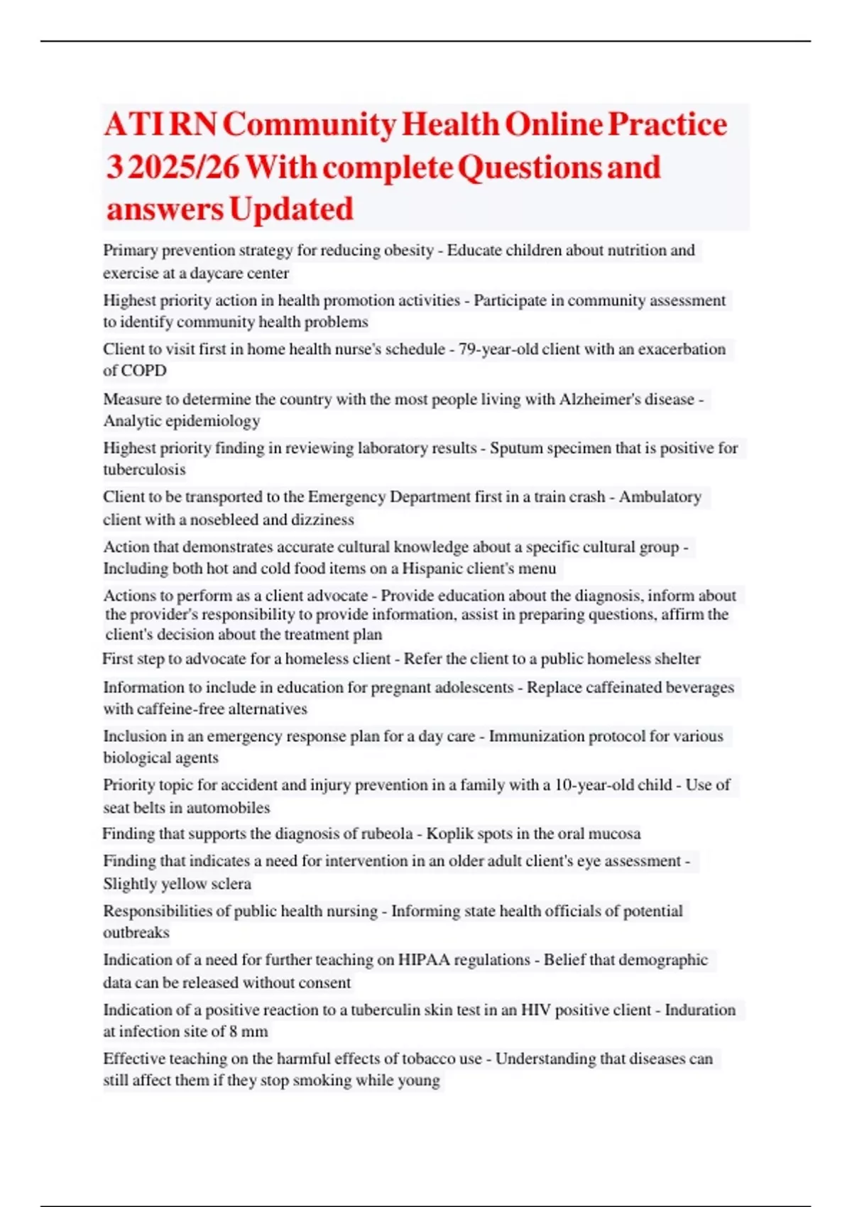 ATI RN Community Health Online Practice 3 2025/26 With complete Questions and answers Updated ATI RN Community Health Online Practice 3 2025/26 With complete Questions and answers Updated ATI RN Community Health Online Practice 3 2025/26 With complete Questions and answers Updated ATI RN Community Health Online Practice 3 2025/26 With complete Questions and answers Updated ATI RN Community Health Online Practice 3 2025/26 With complete Questions and answers Updated ATI RN Community Health Online Practice 3 2025/26 With complete Questions and answers Updated ATI RN Community Health Online Practice 3 2025/26 With complete Questions and answers Updated