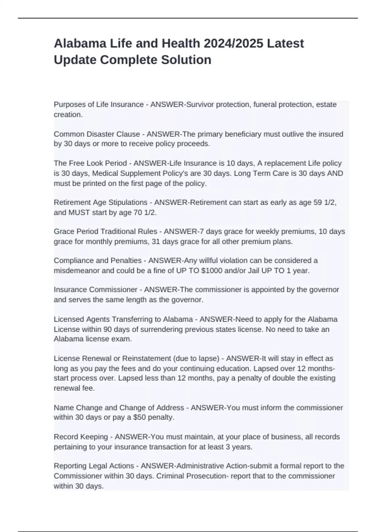 Alabama Life and Health 2024/2025 Latest Update Complete Solution