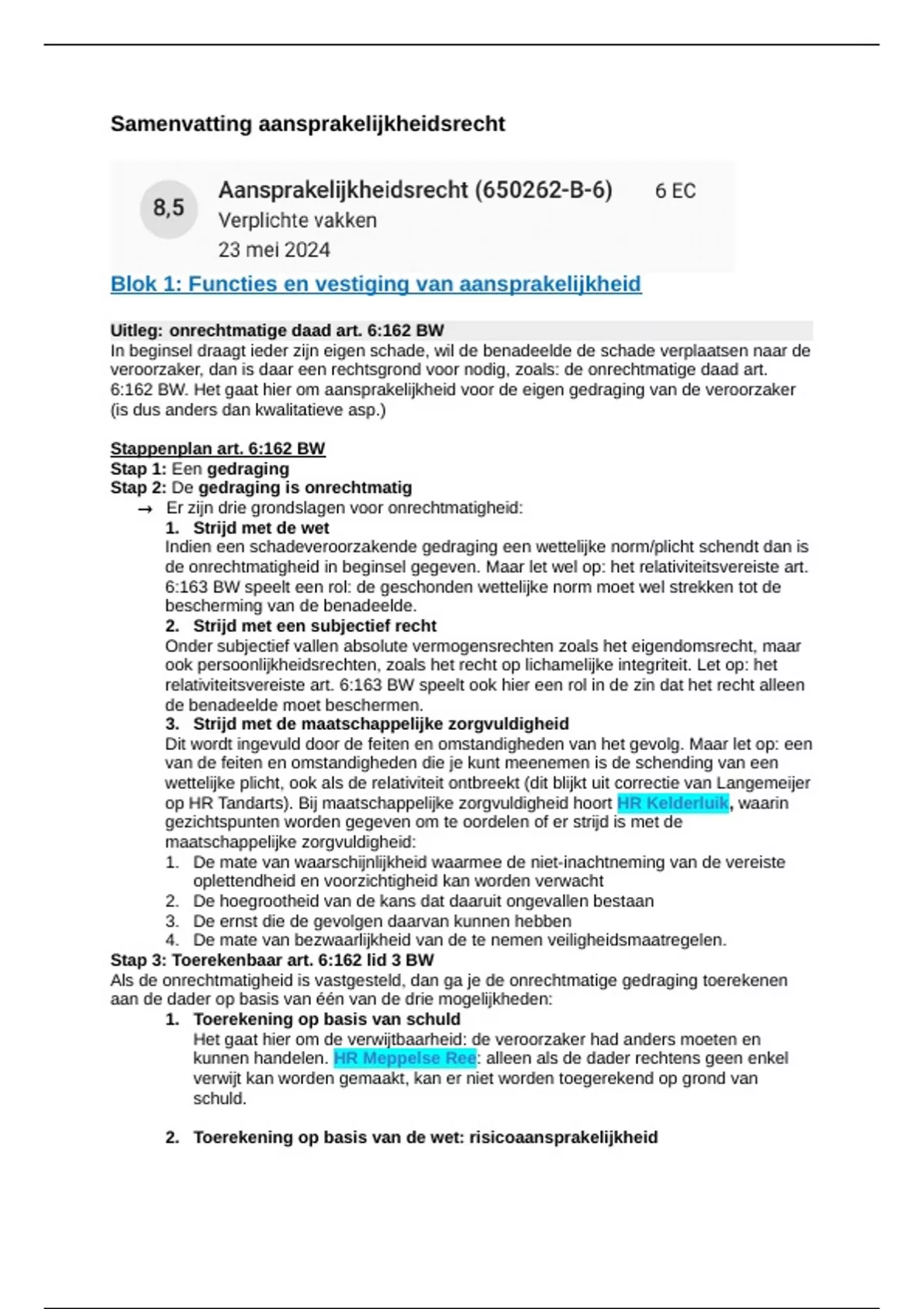 Stap 3: Toerekenbaar art. 6:162 lid 3 BW