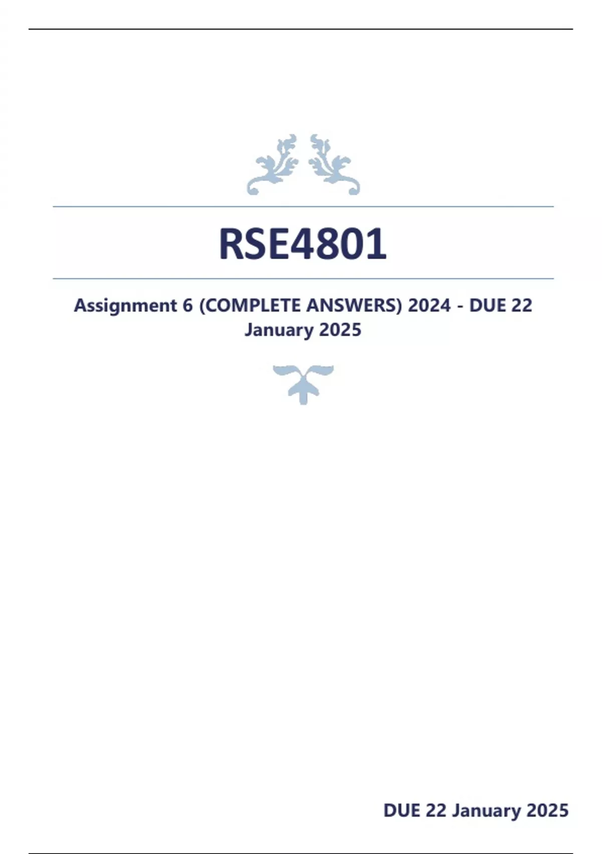 RSE4801 Assignment 6 (COMPLETE ANSWERS) 2024 - DUE 22 January 2025