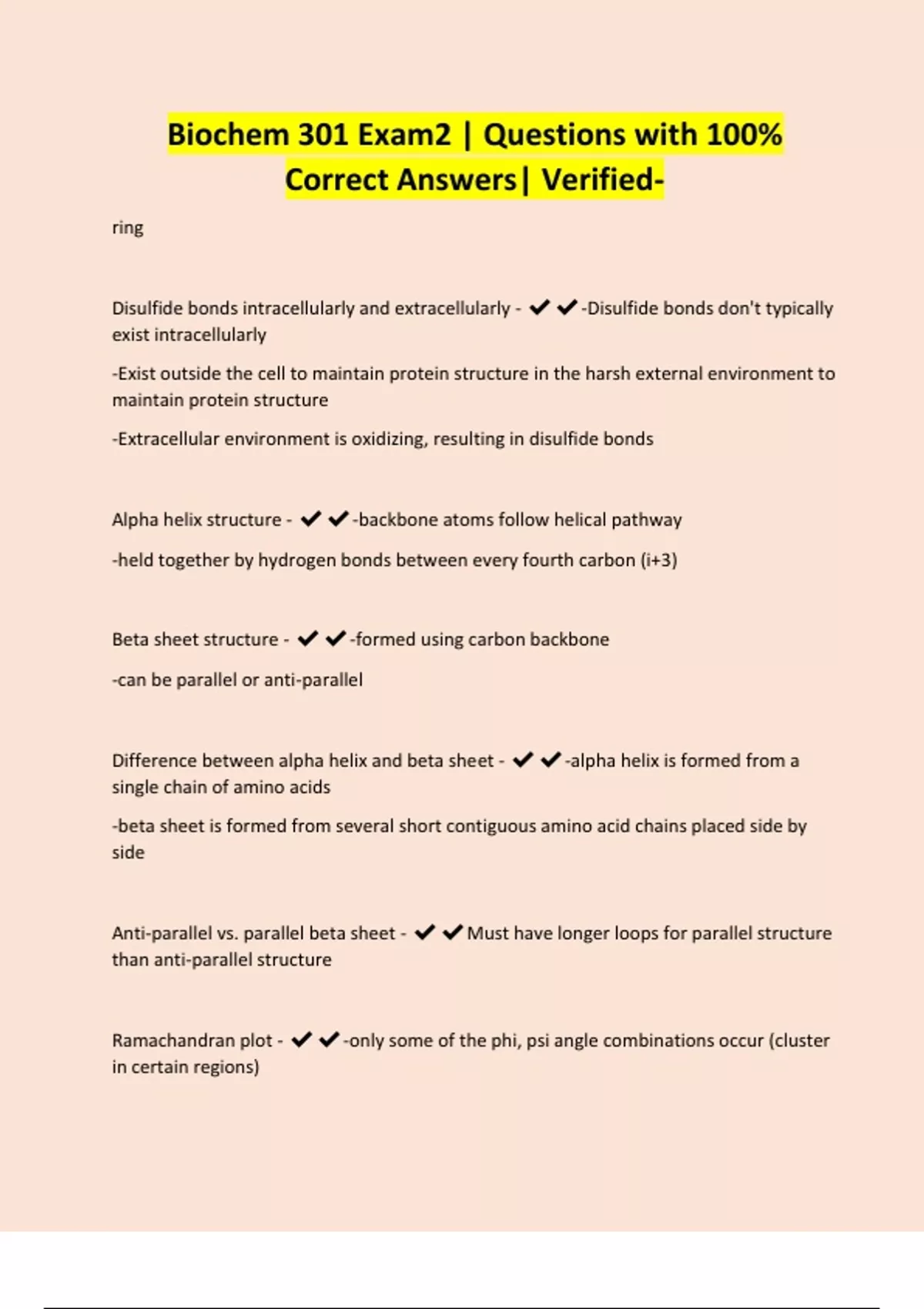 Biochem 301 Exam2 | Questions with 100% Correct Answers| Verified