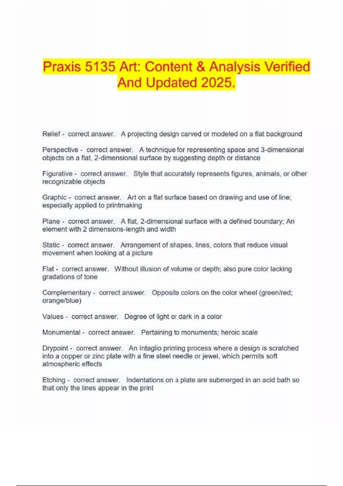Praxis 5135 Art: Content & Analysis Verified And Updated 2025.