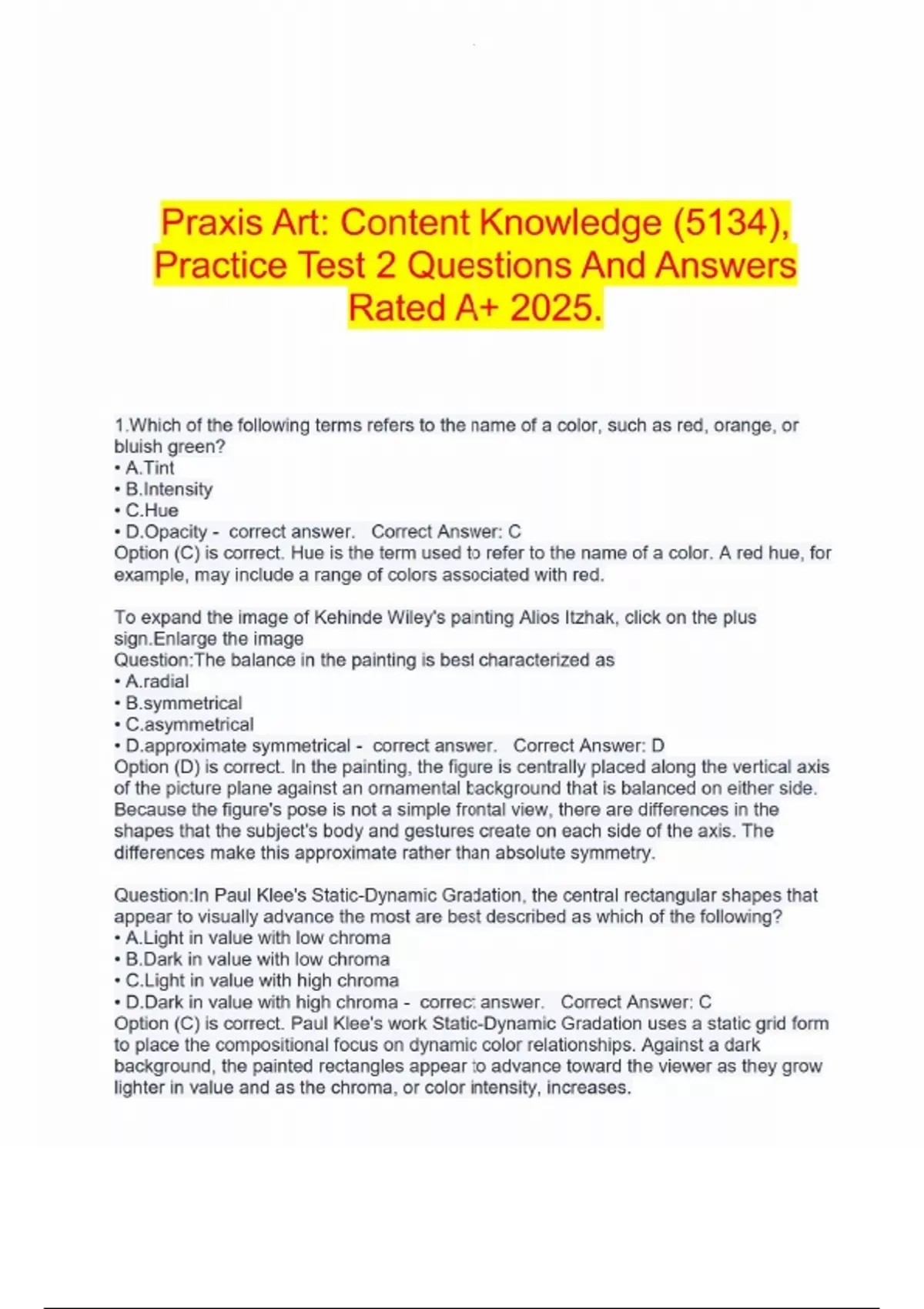 Praxis Art: Content Knowledge (5134), Practice Test 2 Questions And Answers Rated A+ 2025. Praxis Art: Content Knowledge (5134), Practice Test 2 Questions And Answers Rated A+ 2025. Praxis Art: Content Knowledge (5134), Practice Test 2 Questions And Answers Rated A+ 2025. Praxis Art: Content Knowledge (5134), Practice Test 2 Questions And Answers Rated A+ 2025. Praxis Art: Content Knowledge (5134), Practice Test 2 Questions And Answers Rated A+ 2025.