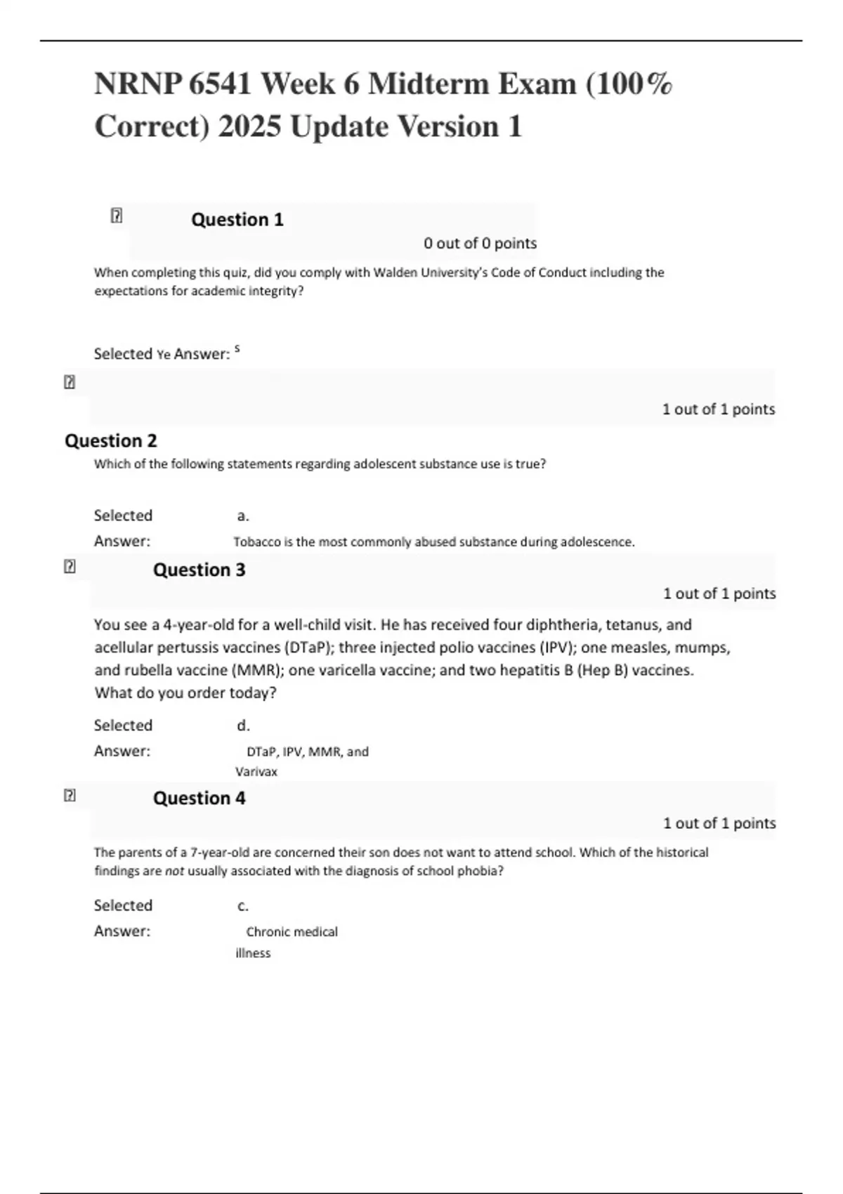 NRNP 6541 Week 6 Midterm Exam (100- Correct) 2025 Update Version 1/NRNP 6541 Week 6 Midterm Exam (100- Correct) 2025 Update Version 1/NRNP 6541 Week 6 Midterm Exam (100- Correct) 2025 Update Version 1