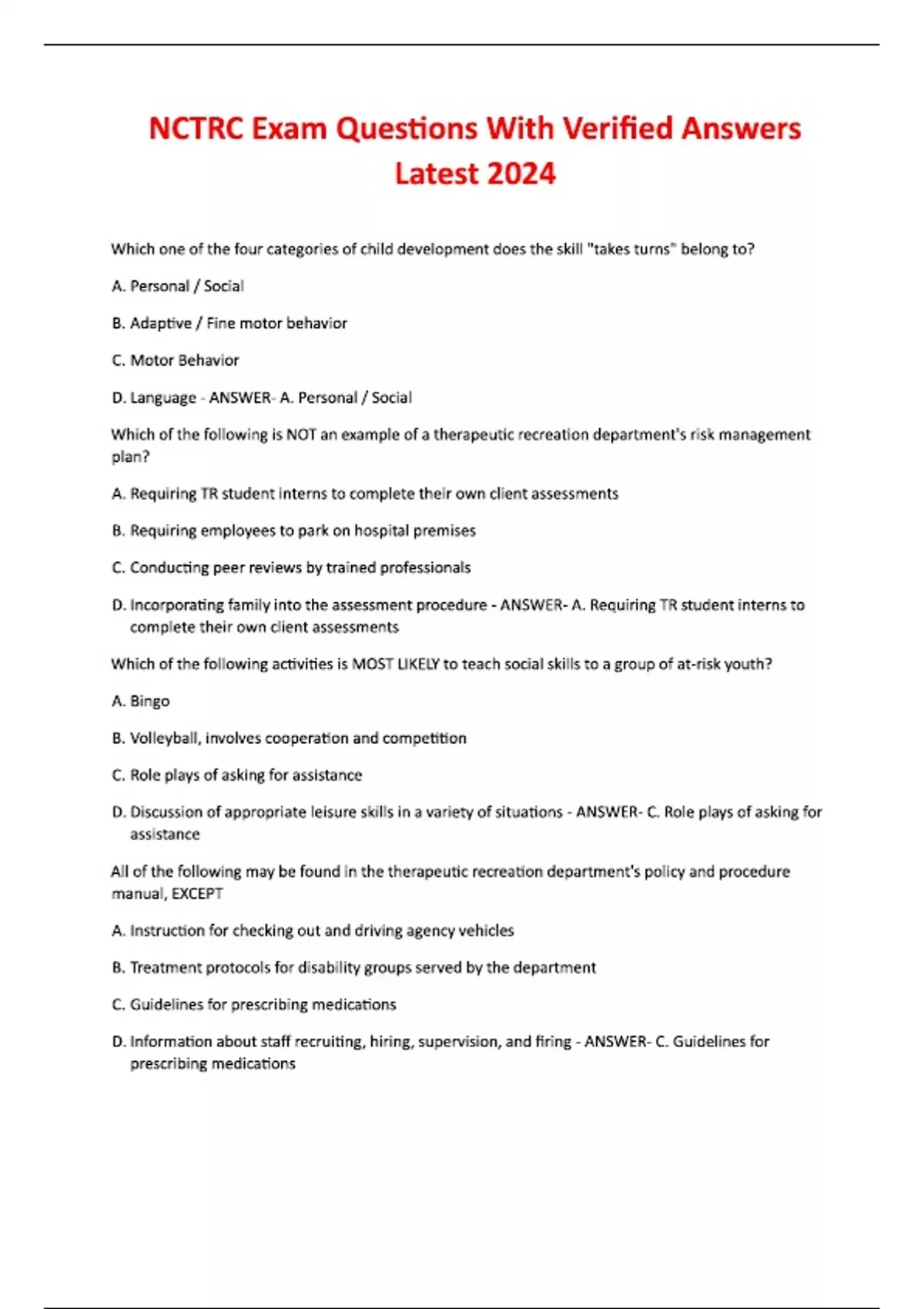 NCTRC Exam Questions With Verified Answers Latest 2024