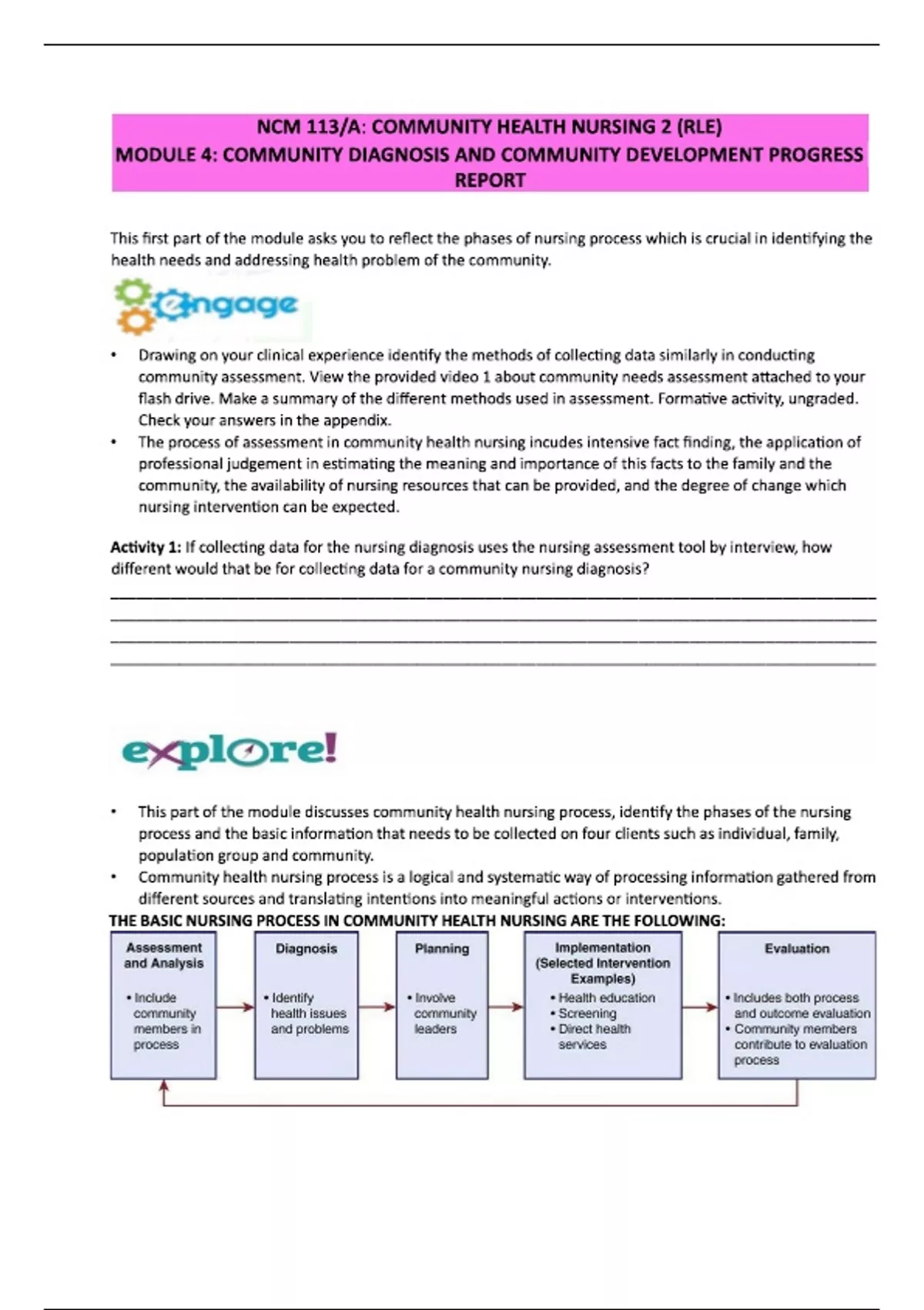 NCM 113, A COMMUNITY HEALTH NURSING 2 (RLE) MODULE 4 COMMUNITY DIAGNOSIS AND COMMUNITY DEVELOPMENT