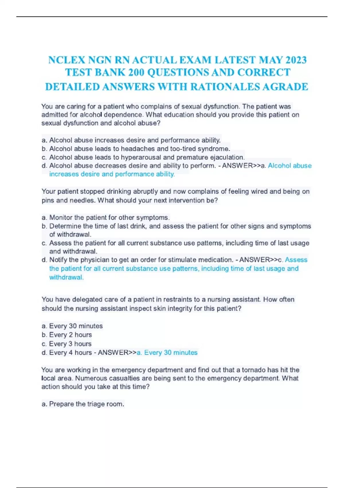 NCLEX NGN RN ACTUAL EXAM LATEST MAY TEST BANK 200 QUESTIONS AND CORRECT DETAILED ANSWERS WITH RATIONALES AGRADENCLEX NGN RN ACTUAL EXAM LATEST MAY TEST BANK 200 QUESTIONS AND CORRECT DETAILED ANSWERS WITH RATIONALES AGRADENCLEX NGN RN ACTUAL EXAM LATEST MAY TEST BANK 200 QUESTIONS AND CORRECT DETAILED ANSWERS WITH RATIONALES AGRADENCLEX NGN RN ACTUAL EXAM LATEST MAY TEST BANK 200 QUESTIONS AND CORRECT DETAILED ANSWERS WITH RATIONALES AGRADENCLEX NGN RN ACTUAL EXAM LATEST MAY TEST BANK 200 QUESTIONS AND CORRECT DETAILED ANSWERS WITH RATIONALES AGRADENCLEX NGN RN ACTUAL EXAM LATEST MAY TEST BANK 200 QUESTIONS AND CORRECT DETAILED ANSWERS WITH RATIONALES AGRADENCLEX NGN RN ACTUAL EXAM LATEST MAY TEST BANK 200 QUESTIONS AND CORRECT DETAILED ANSWERS WITH RATIONALES AGRADENCLEX NGN RN ACTUAL EXAM LATEST MAY TEST BANK 200 QUESTIONS AND CORRECT DETAILED ANSWERS WITH RATIONALES AGRADENCLEX NGN RN ACTUAL EXAM LATEST MAY TEST BANK 200 QUESTIONS AND CORRECT DETAILED ANSWERS WITH RATIONALES AGRADENCLEX NGN RN ACTUAL EXAM LATEST MAY TEST BANK 200 QUESTIONS AND CORRECT DETAILED ANSWERS WITH RATIONALES AGRADENCLEX NGN RN ACTUAL EXAM LATEST MAY TEST BANK 200 QUESTIONS AND CORRECT DETAILED ANSWERS WITH RATIONALES AGRADE