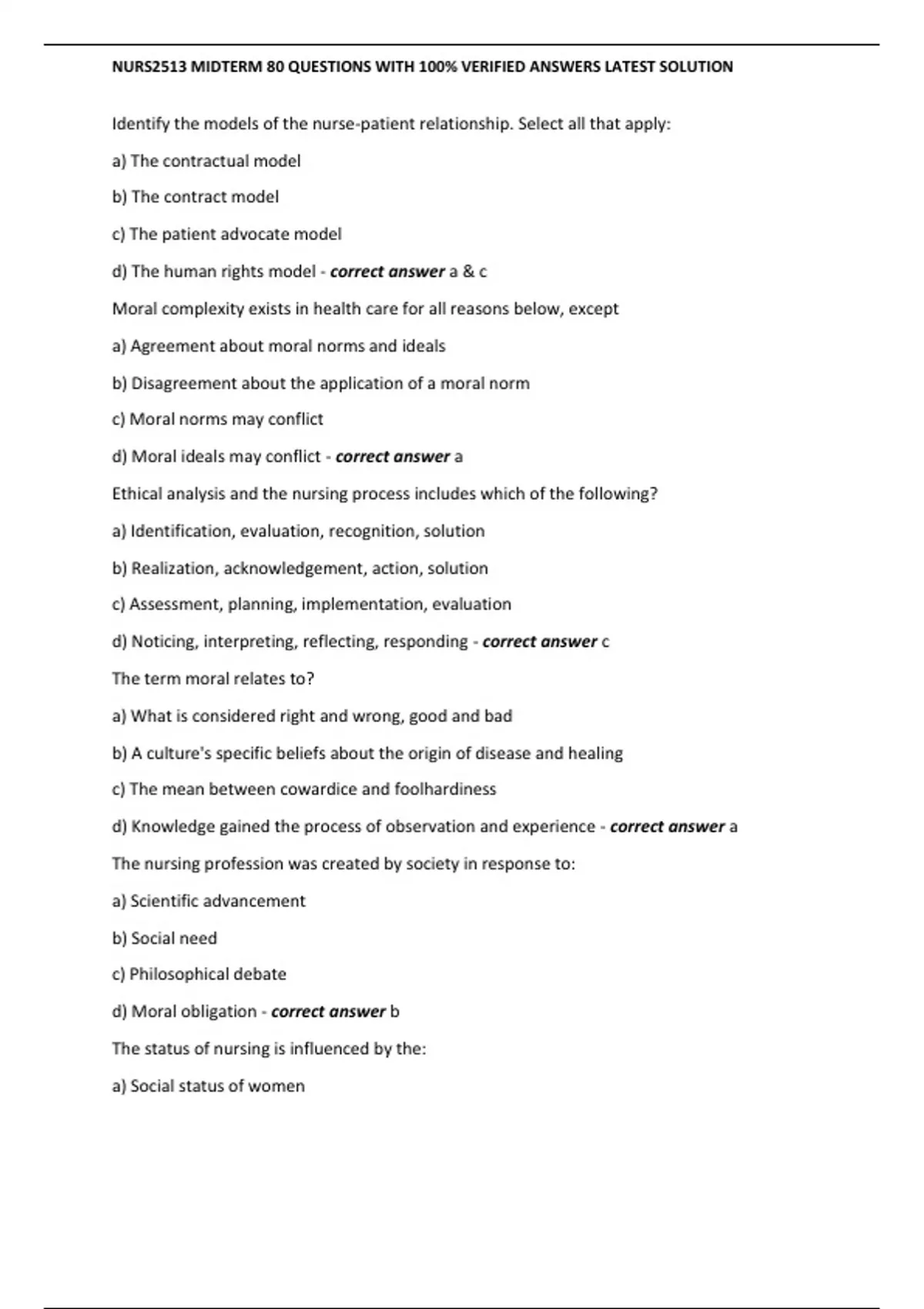 NURS2513 MIDTERM 80 QUESTIONS WITH 100% VERIFIED ANSWERS LATEST SOLUTION/NURS2513 MIDTERM 80 QUESTIONS WITH 100% VERIFIED ANSWERS LATEST SOLUTION/NURS2513 MIDTERM 80 QUESTIONS WITH 100% VERIFIED ANSWERS LATEST SOLUTION